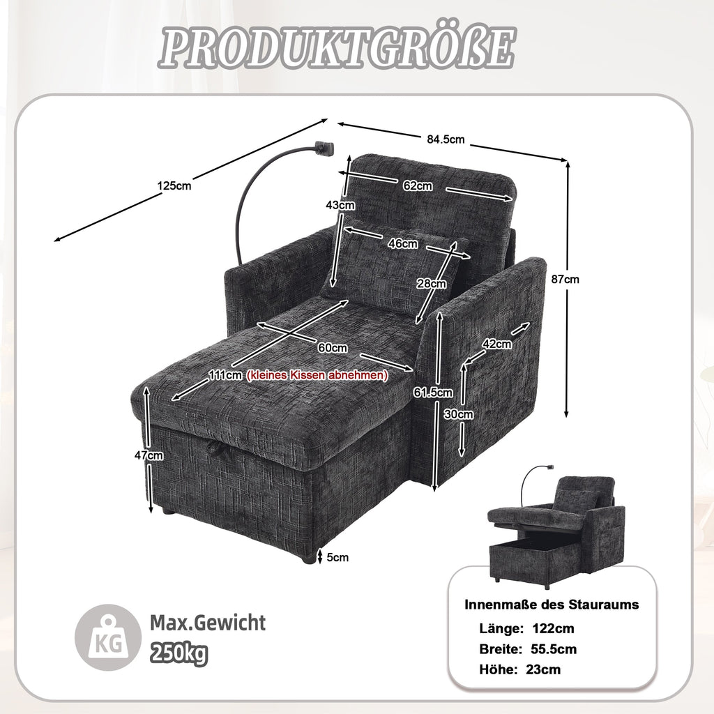 Lazy Sofa, Multifunctional with Phone Holder & Stowable Backrest, Chenille