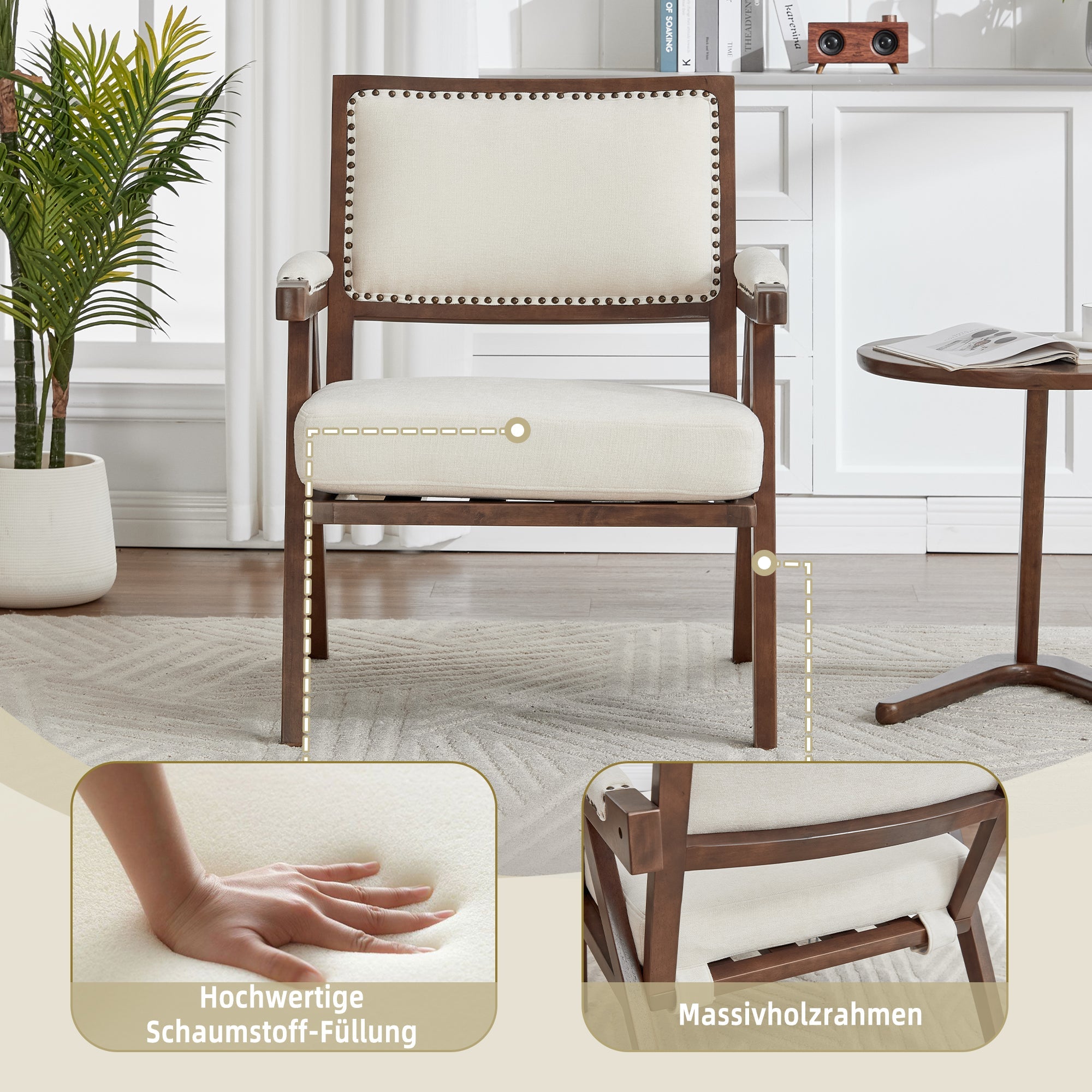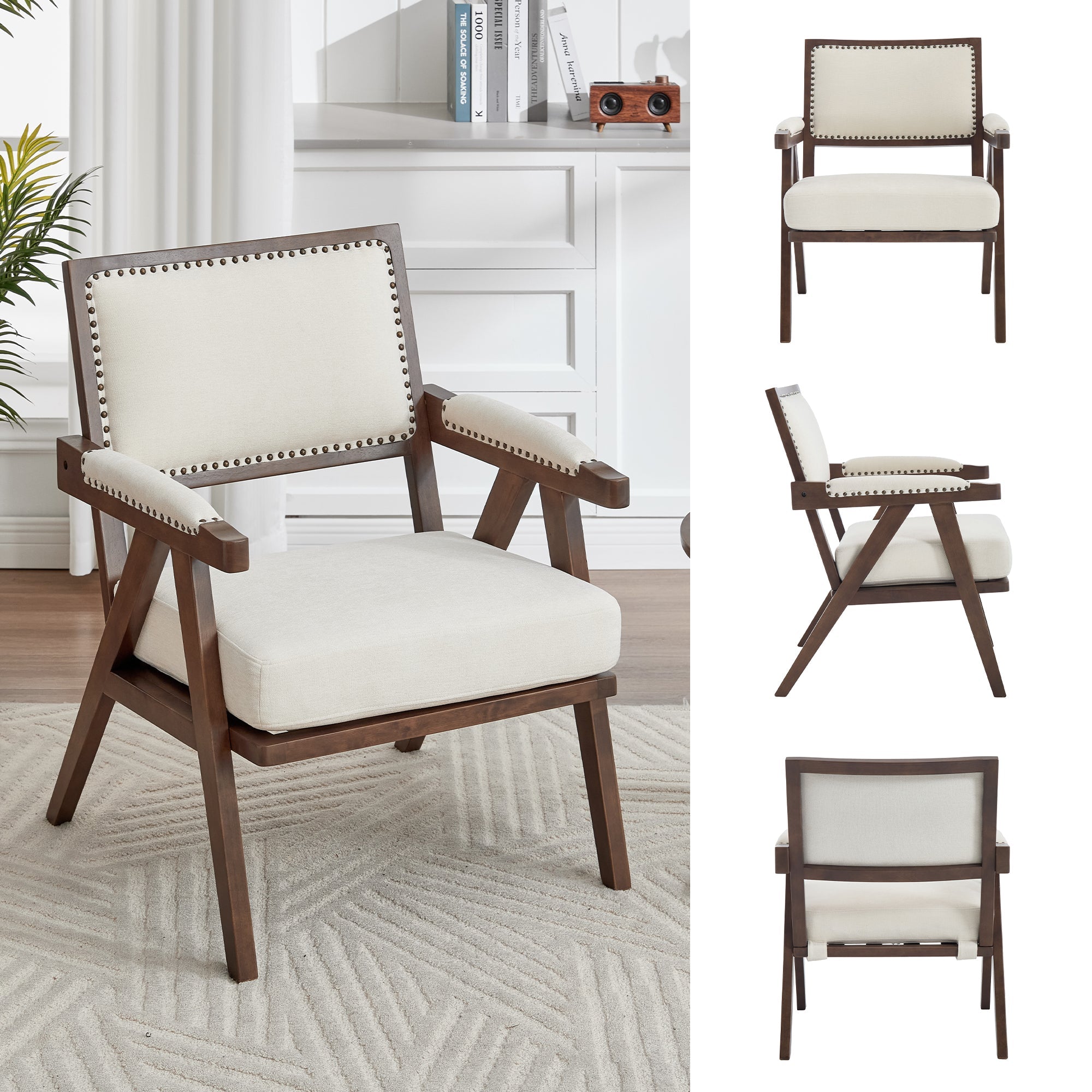 Mid-century modern Lounge Chair, Single Sofa Armchair Wooden Frame, Fabric Upholstered