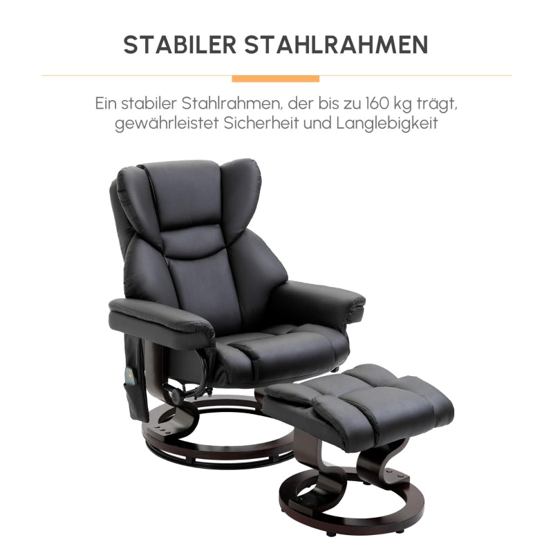 Recliner Chair, Massage Function & Footstool, Faux Leather Black
