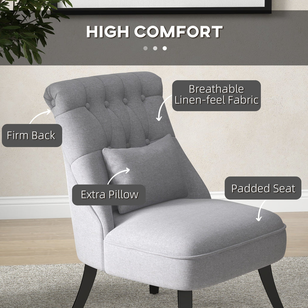 With its elegant shape, including curved legs and a tufted backrest, this upholstered chair boasts an appealing vintage look. It is suitable for various settings, including bedrooms, studios, and offices.