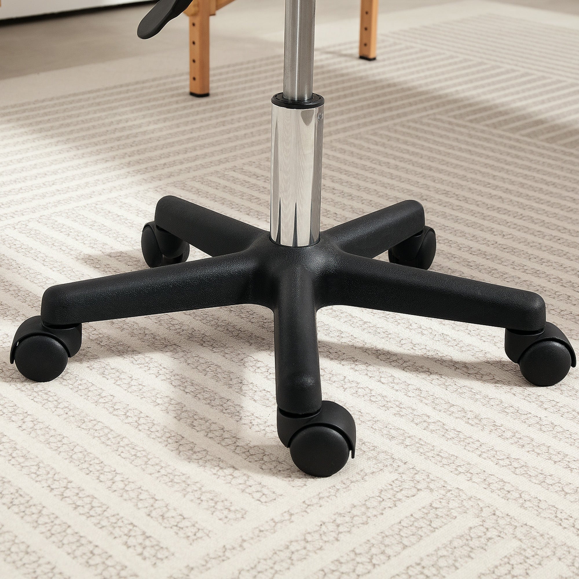 Equipped with five wheels, this chair allows for easy movement while sitting, which is great for cutting hair and carrying out other beauty tasks.