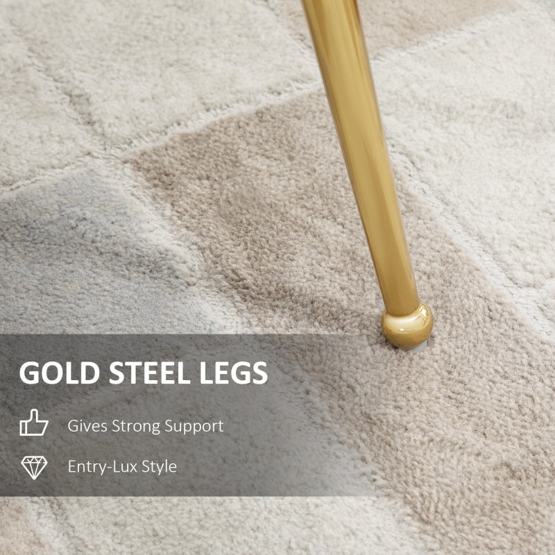 The chairs are supported by robust metal legs with a gold-tone finish, complementing the design.