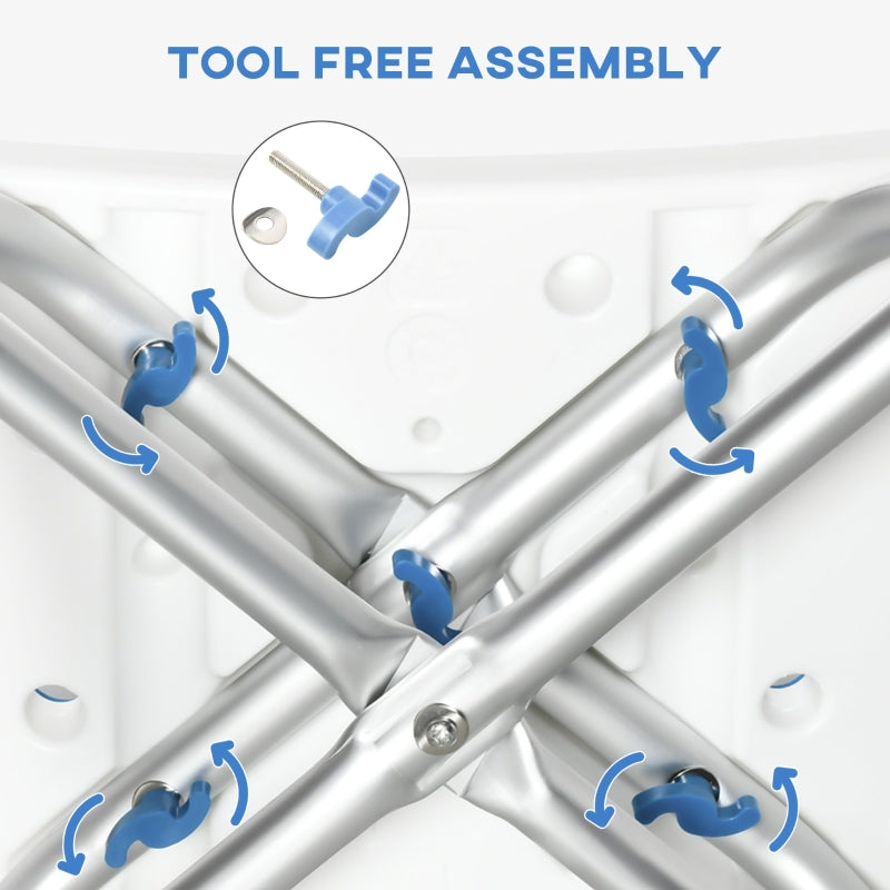 Shower/Bath Stool Adjustable Height Compact Aluminium Frame Blue