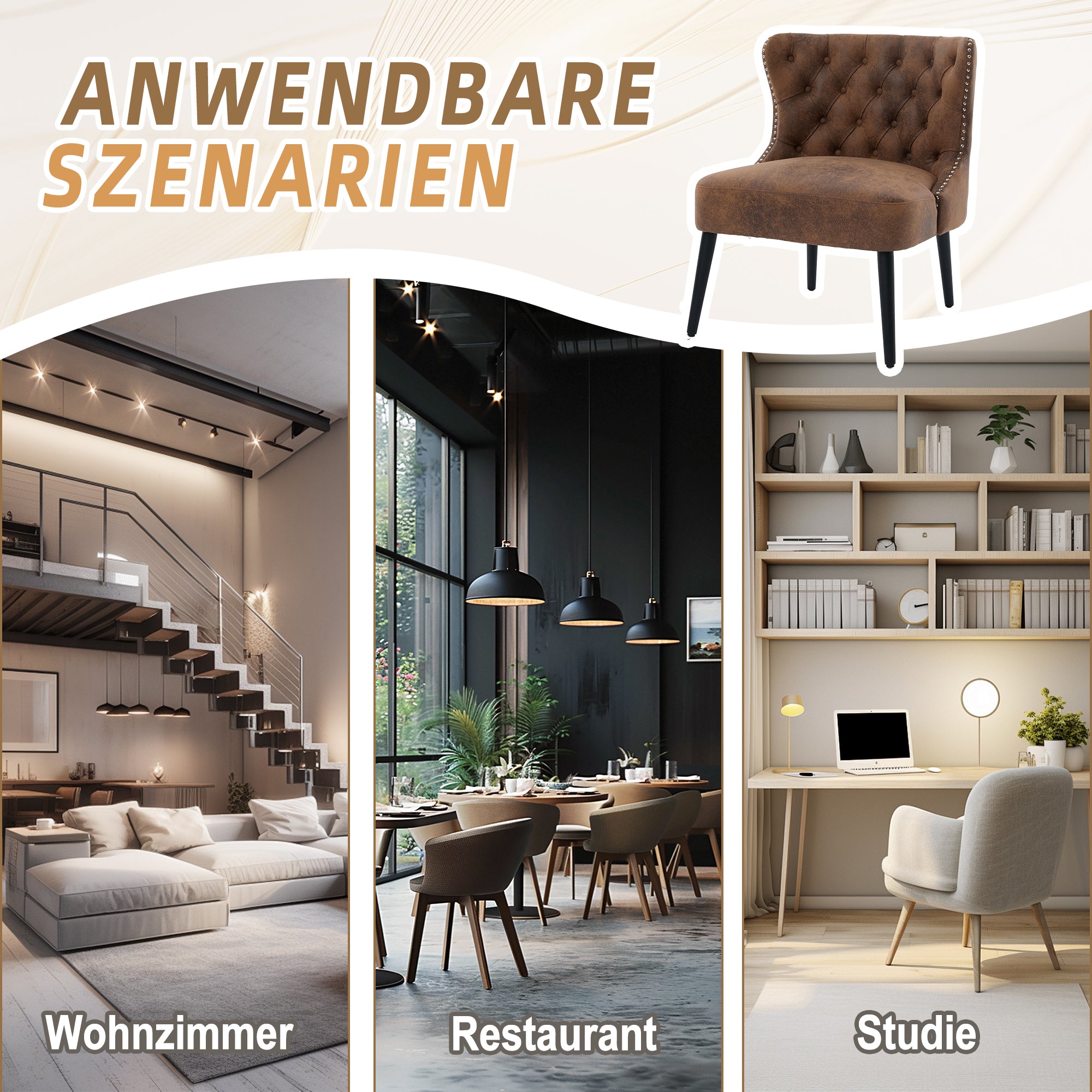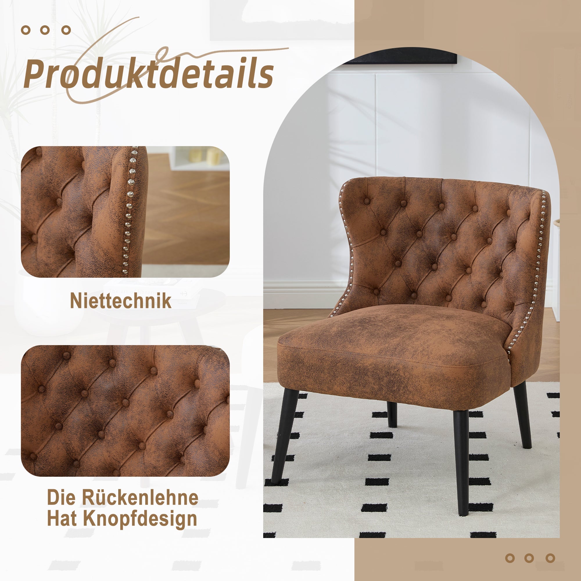 Single Sofa Chair Button Tuft Armless Rivet Trim Solid Wood Legs, Tech Fabric