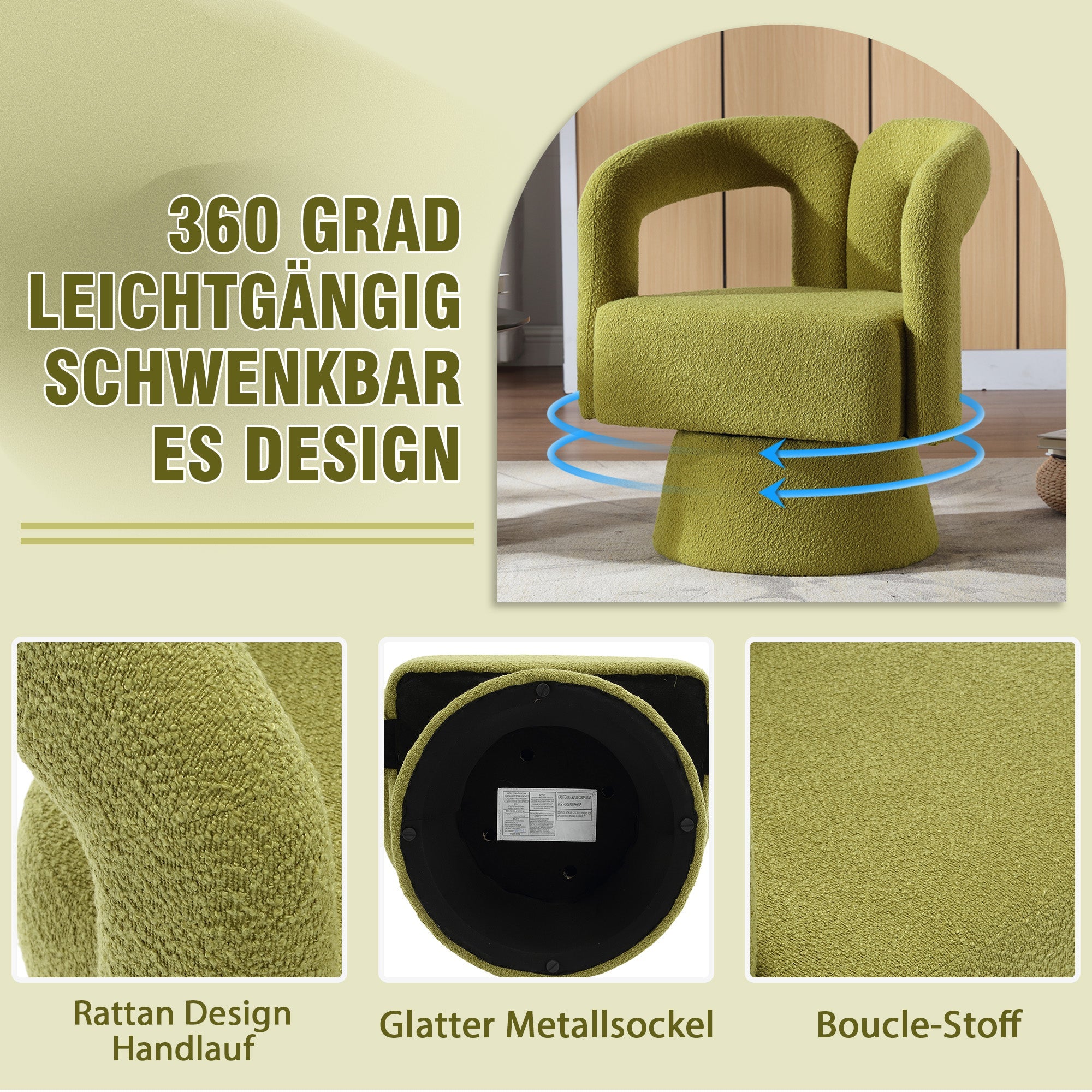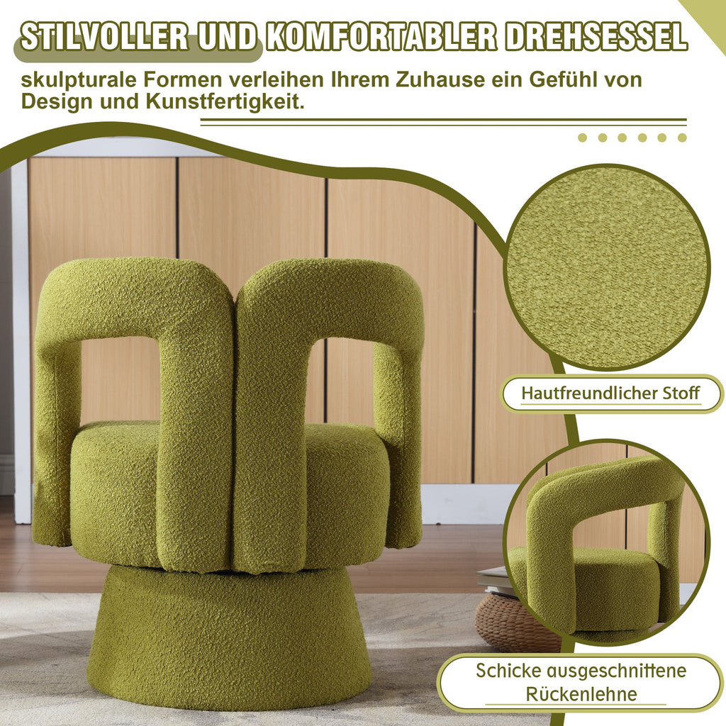 Snuggle Barrel Accent Chair, 360 Degree Rotating Round Armchair with Wide Cushions, Fluffy Fabric, Olive