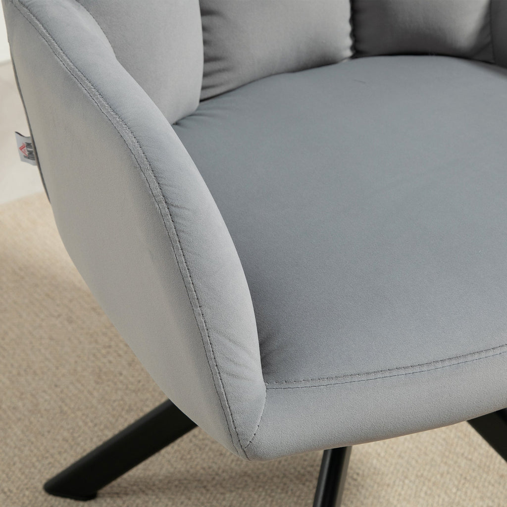 Swivel Lounge Chair with Armrest, Metal Legs, Grey Velvet