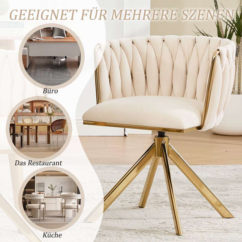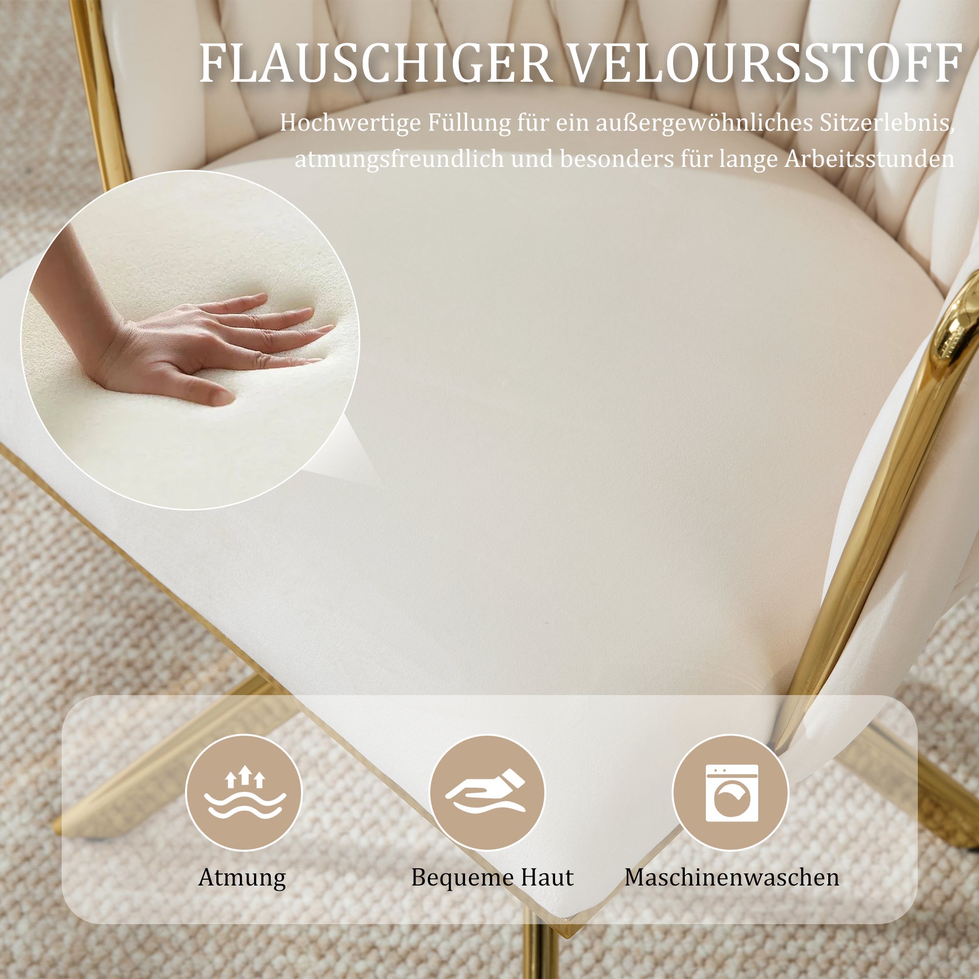 Velour Armchair, Heavy-Duty, 180° Swivel, Ergonomic, Metal Frame