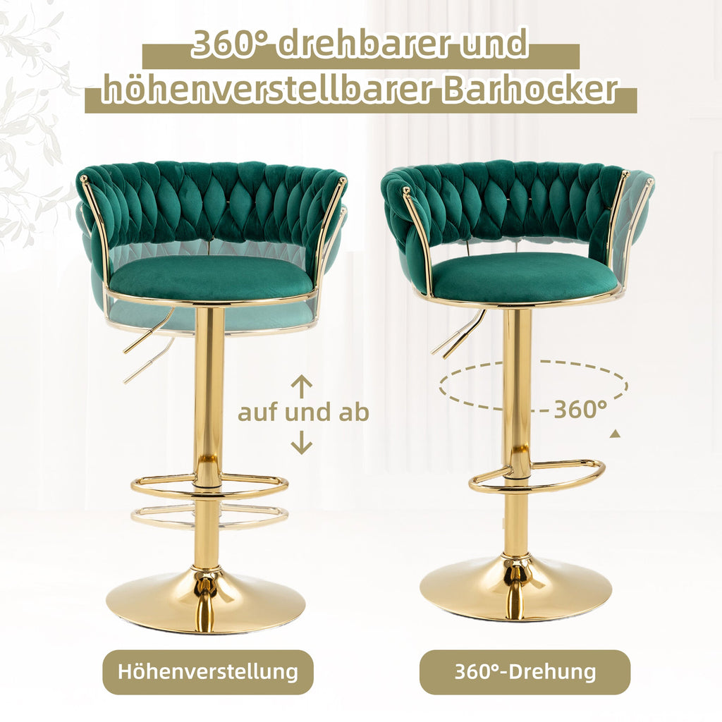 Velvet Bar Stool Set, 360° Swivel, Adjustable Height, Handcrafted Backrest, Upholstered