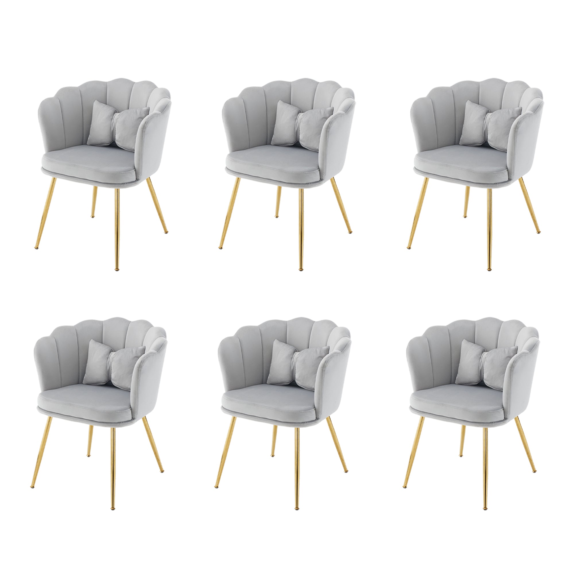 Velvet Chairs, Set of 6 Modern Upholstered with Petal Backs & Butterfly Cushions, Gold-Plated Metal Legs