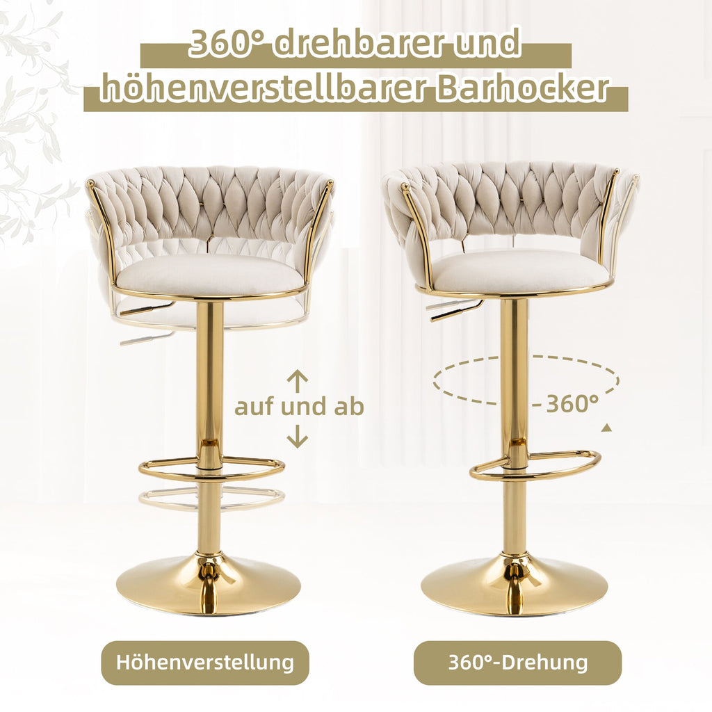 Velvet Swivel Bar Stool 2-Piece Set, Handcrafted Backrest, Adjustable Height, Upholstered