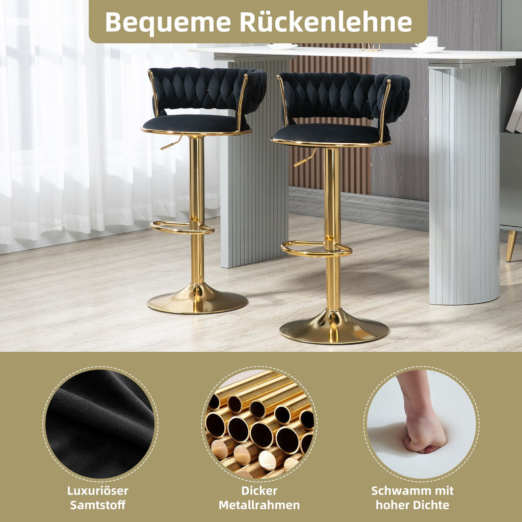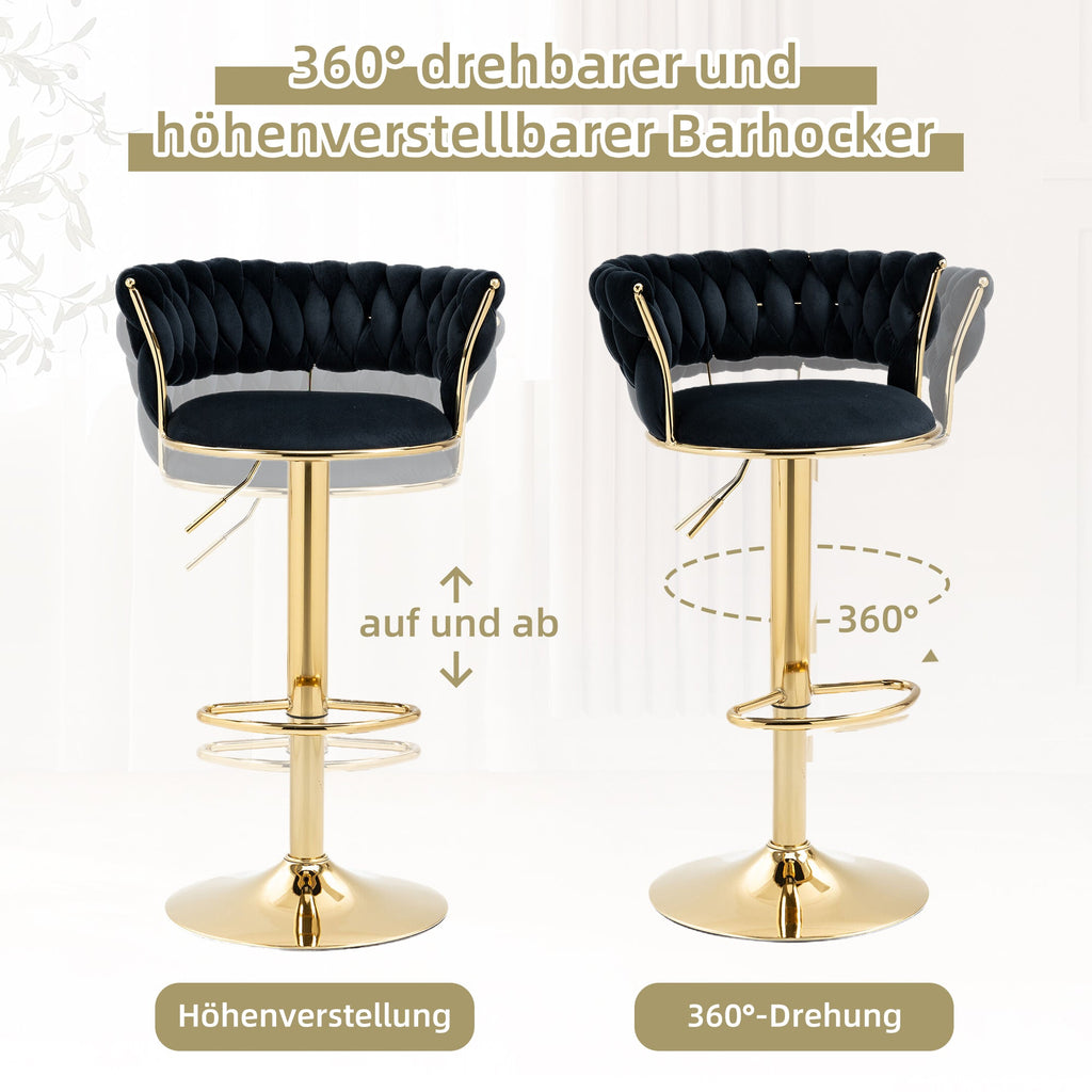 Velvet Swivel Bar Stool Set, Adjustable Height with Handcrafted Backrest