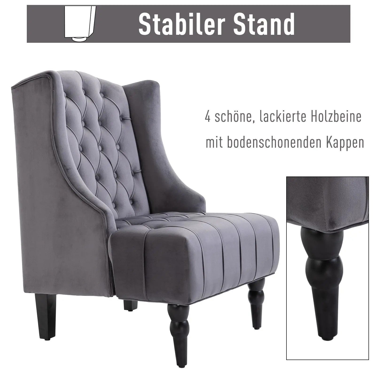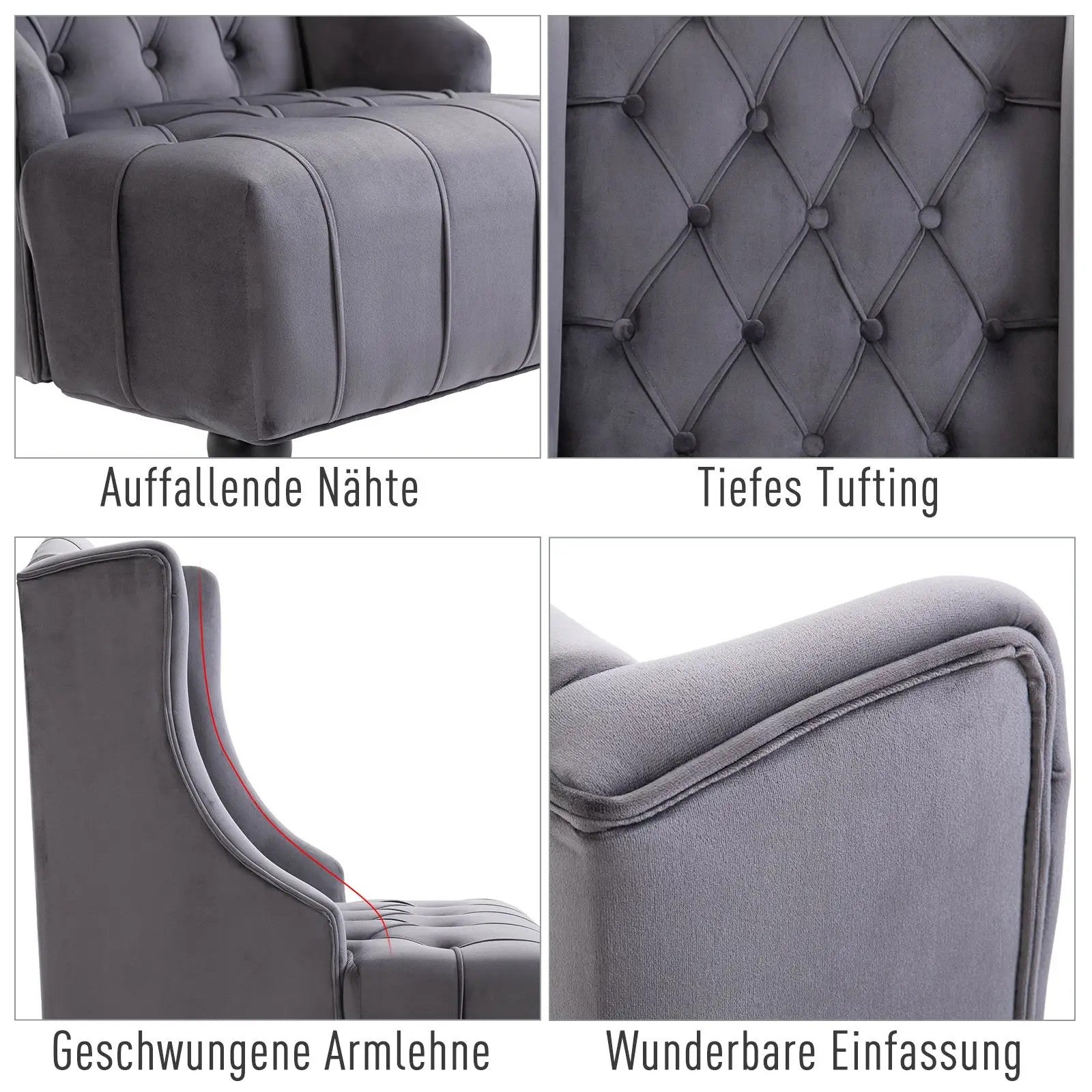 Wingback Chair Recliner, Tufting Raised Legs, Grey Velvet