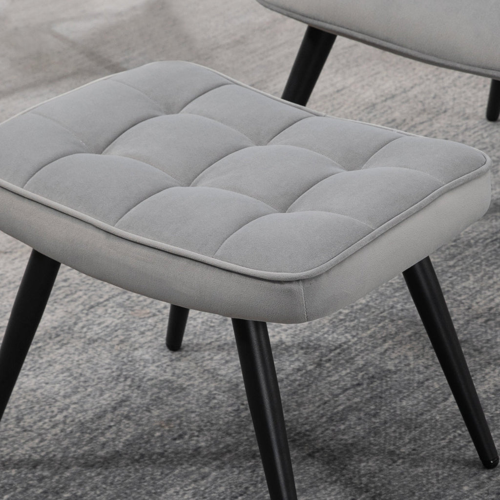 Wingback Chair with Footstool, Upholstered, Velvet Look, Light Grey