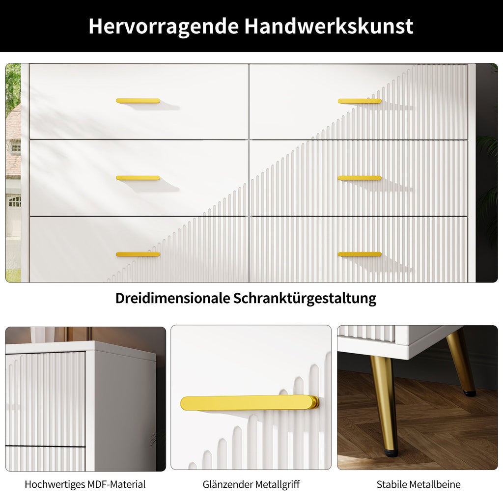 Chest of Drawers, 6-Drawer Cabinet with Golden Legs, White