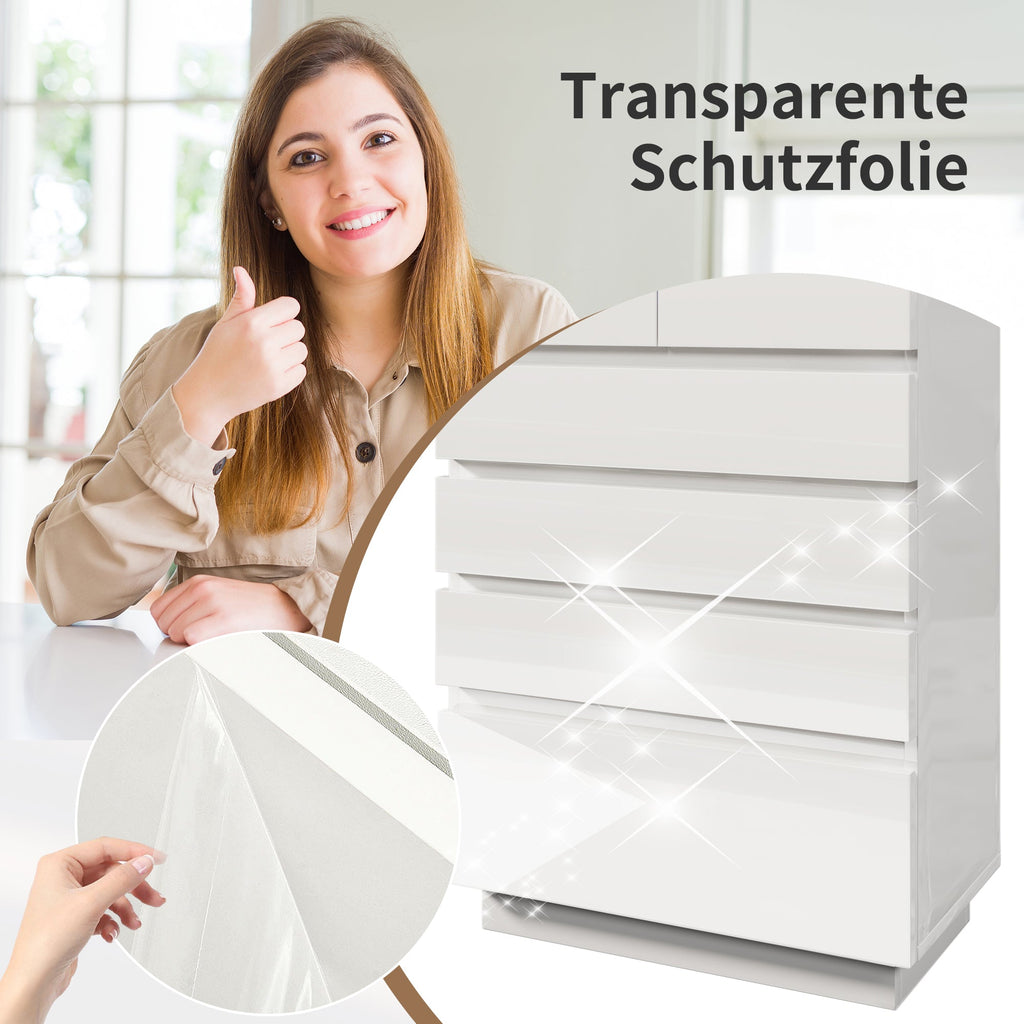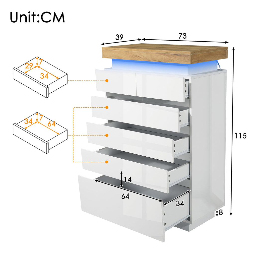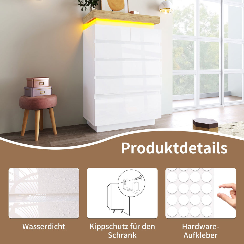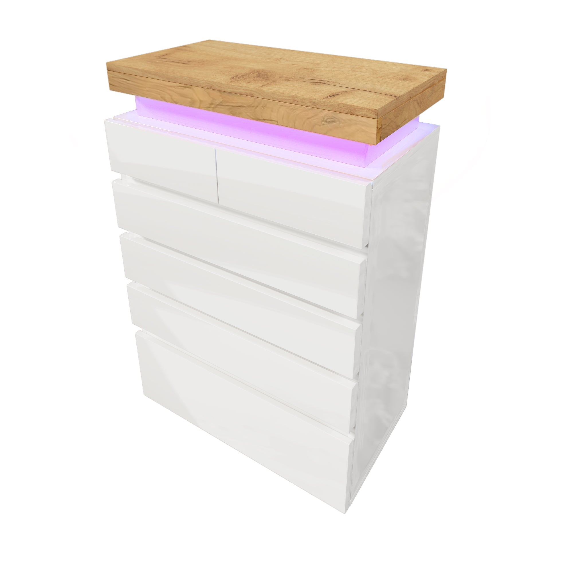Chest of Drawers, 6-Drawer LED High-Gloss Sideboard, White