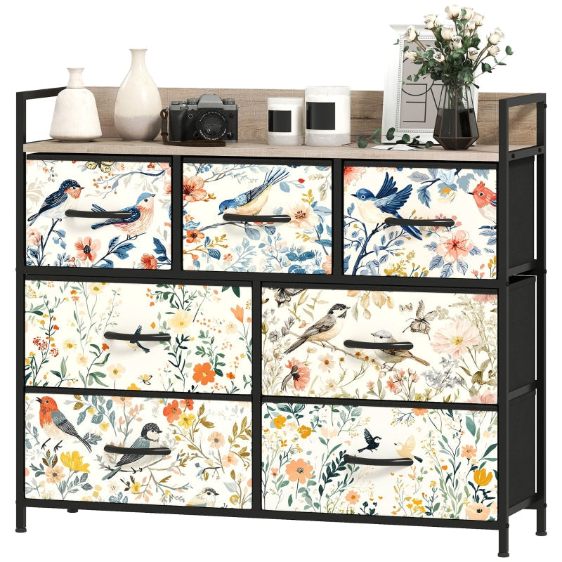 It offers plenty of storage with seven fabric drawers for various items. The drawers can be removed and folded.