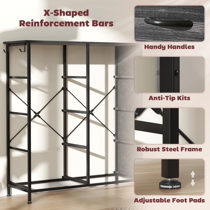 The unit is built with a steel frame, offering a strong core with X support bars for extra reinforcement. Adjustable feet keep the drawers standing steady and balanced. An anti-tipping kit is included to keep the fabric chest of drawers safely secured to the wall, helping to prevent it from falling over.