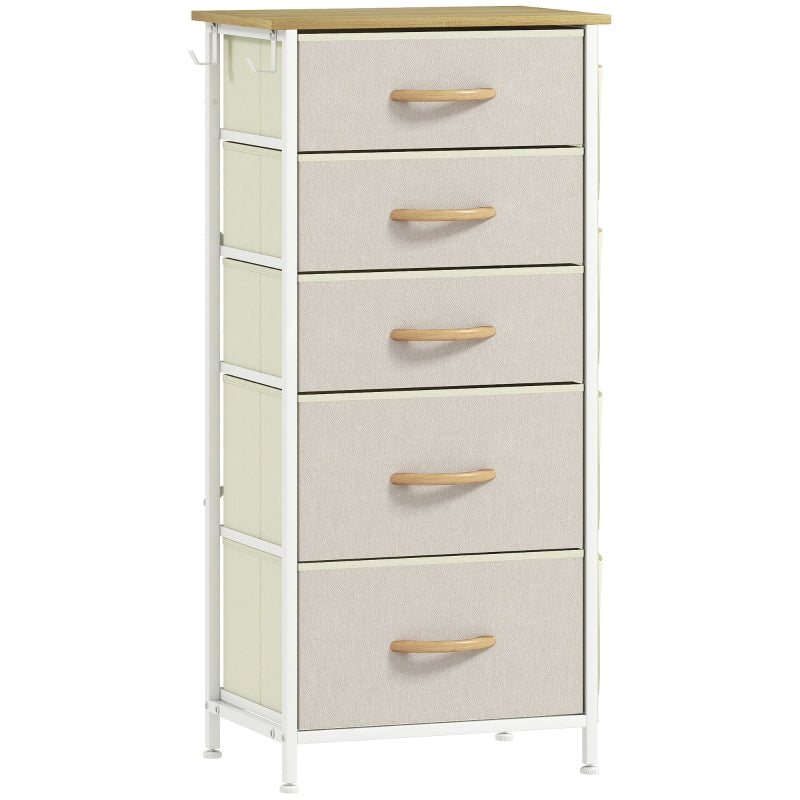 Chest of Drawers, Five Fabric Drawer Storage, Beige