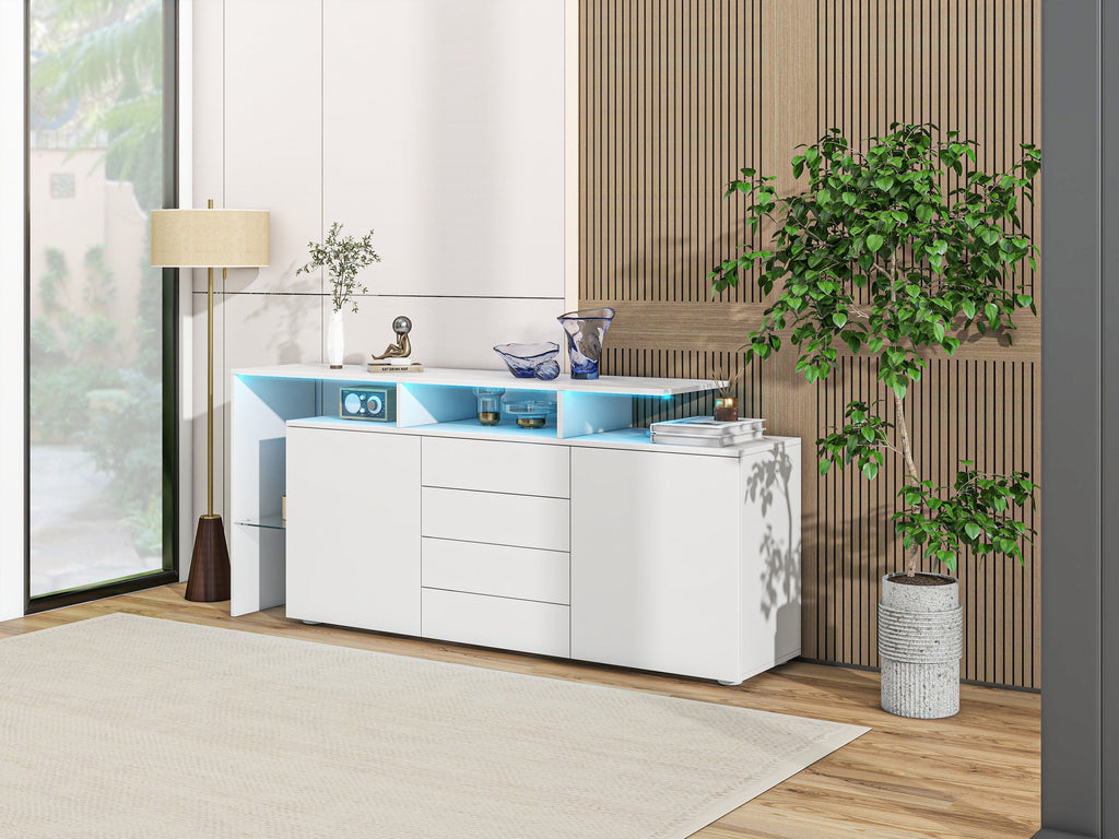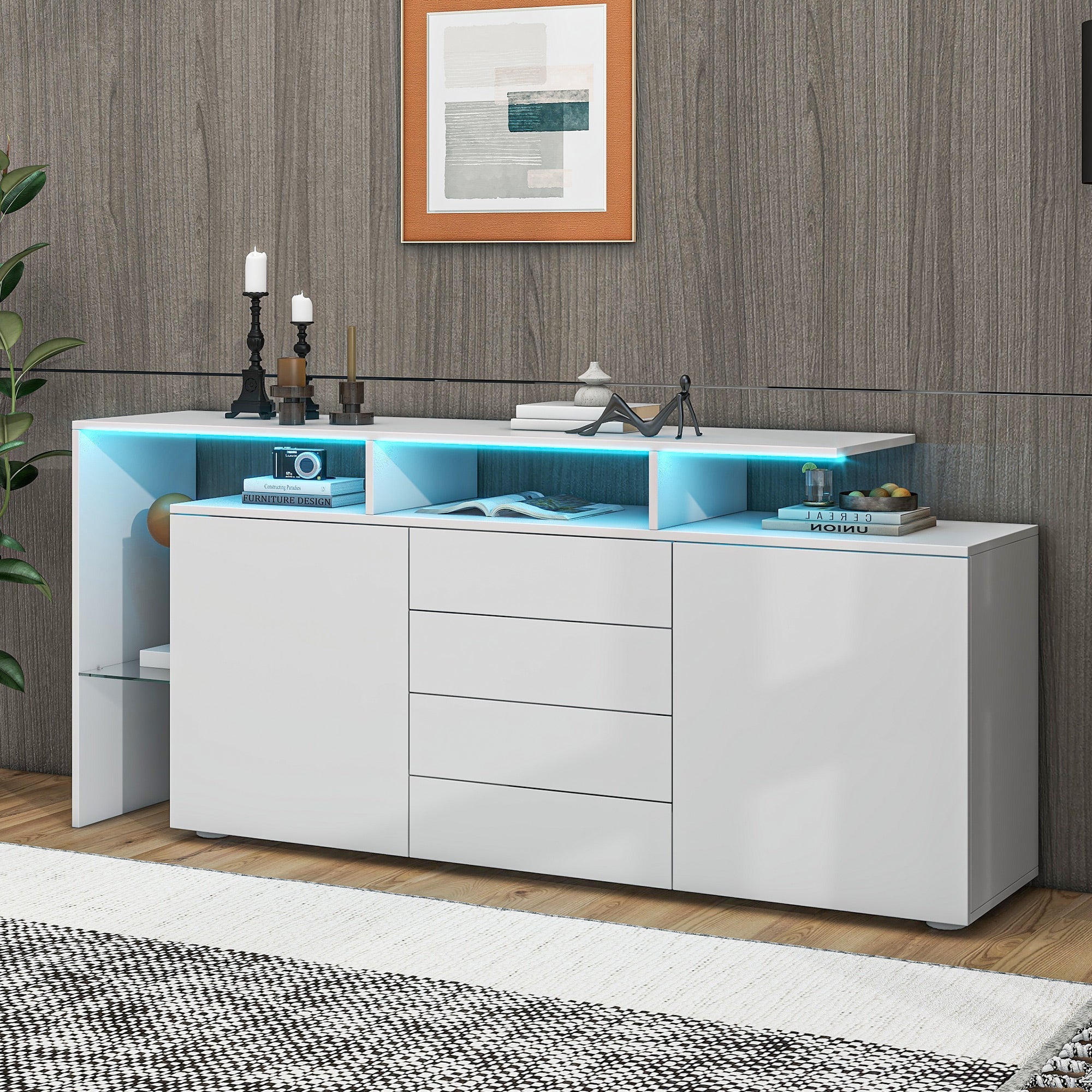 Chest of Drawers Sideboard, High Gloss LED Living Room Cabinet, White