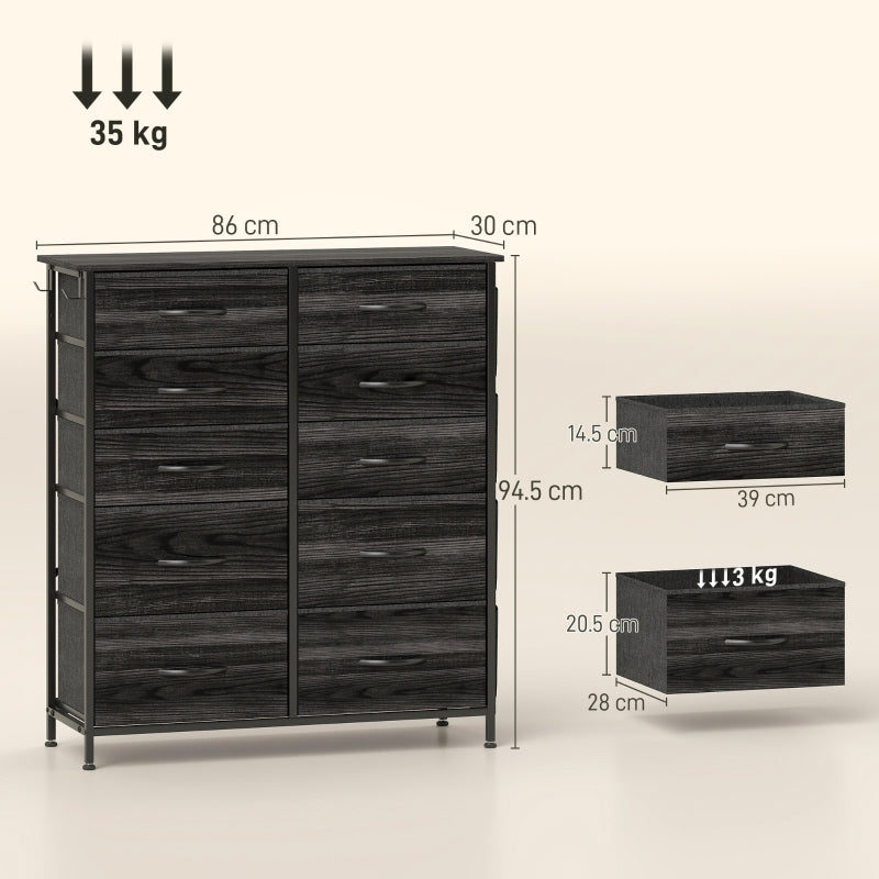 Chest of Drawers, Ten Fabric Drawers, Black