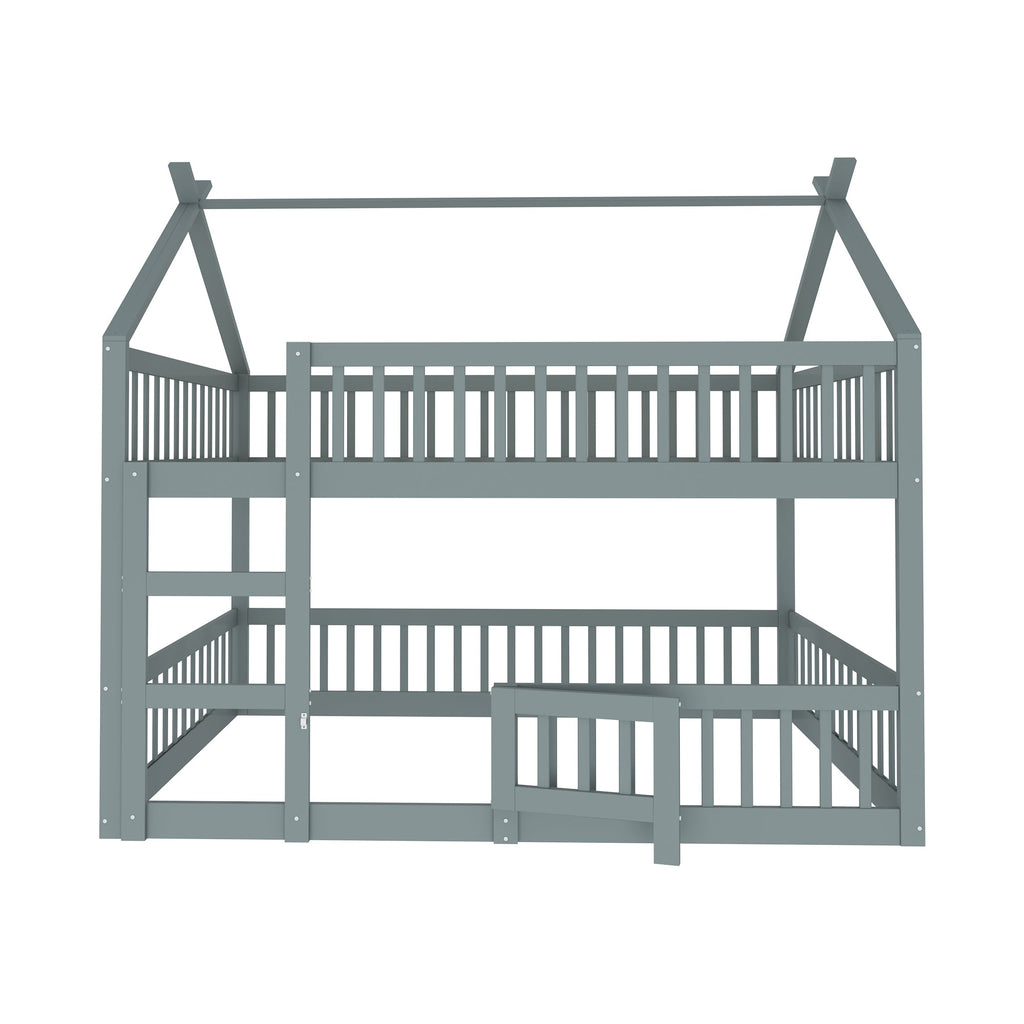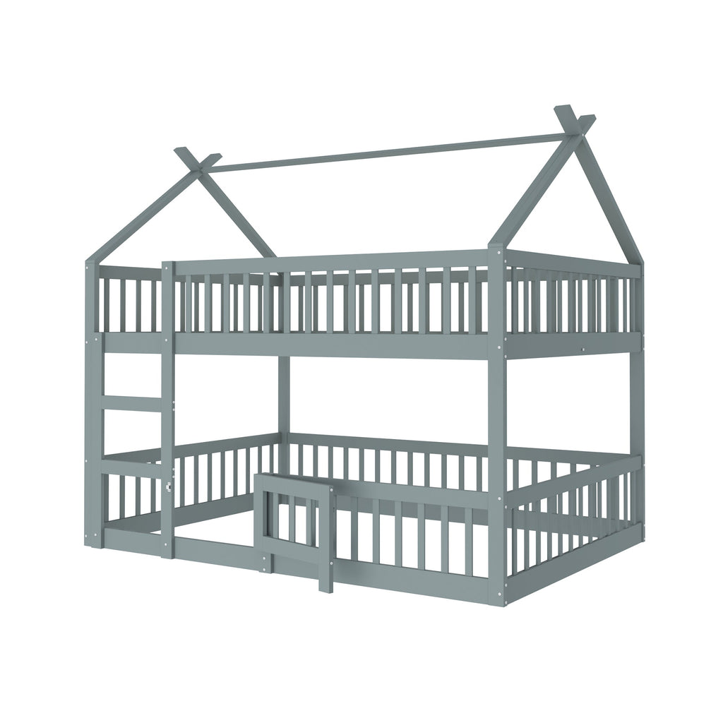 Bunk Bed, 140x200cm Family Bed with Stairs, Solid Wood, Grey