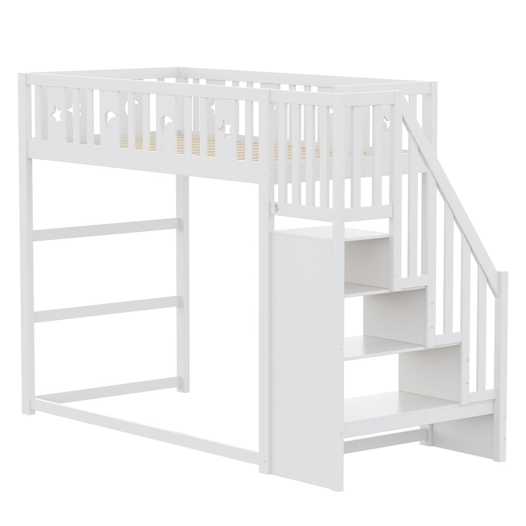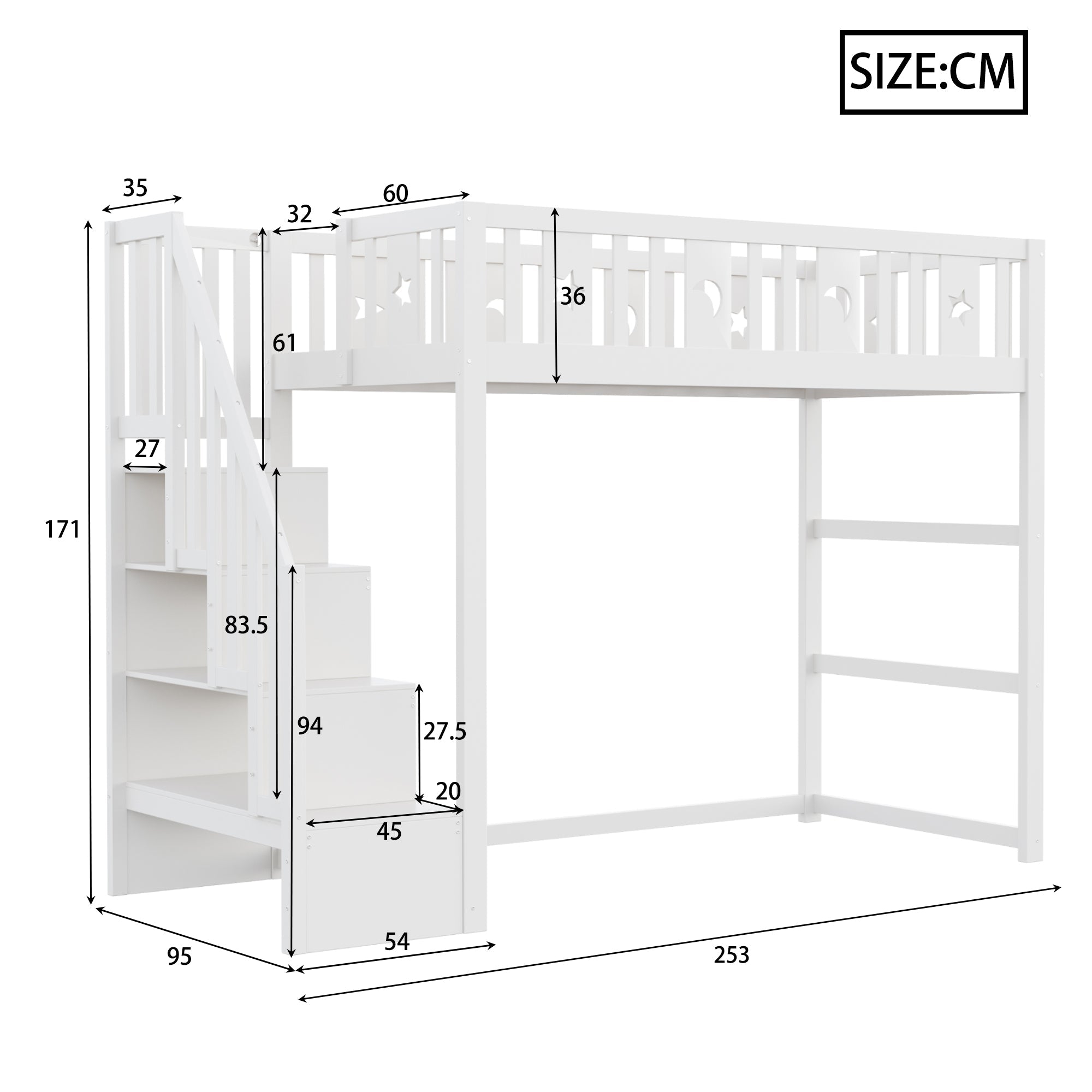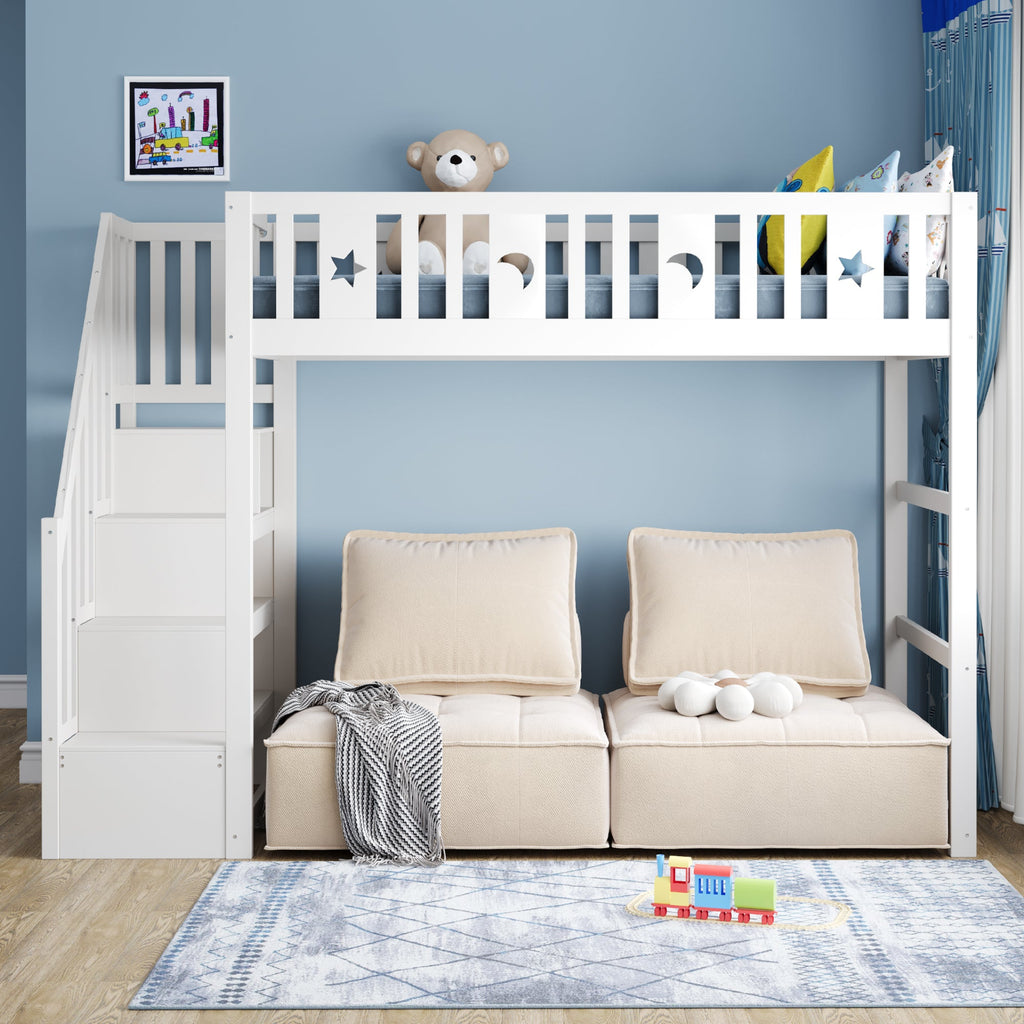Bunk Bed, 90x200 with Stairs, Loft, Solid Wood, White