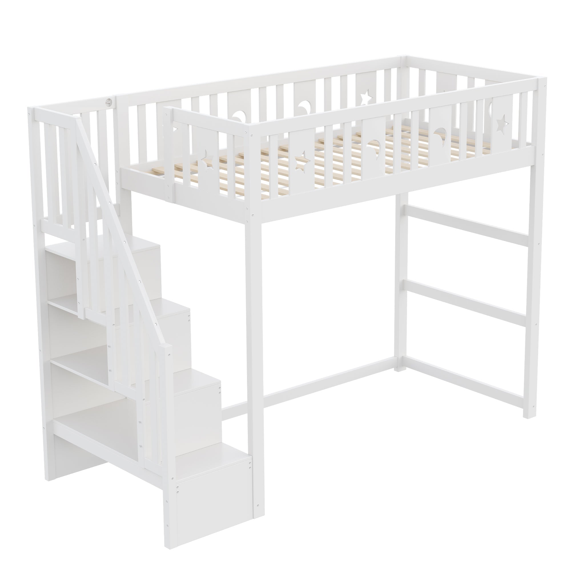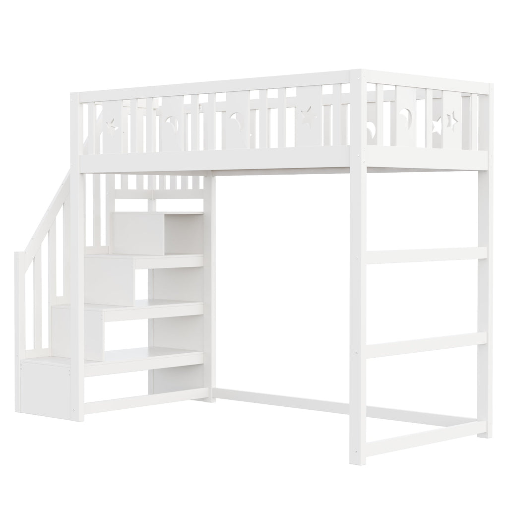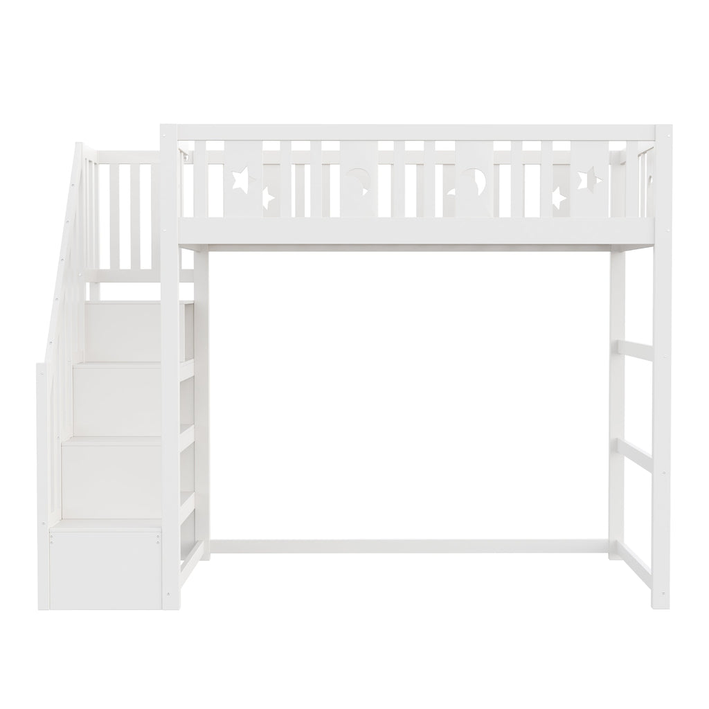 Bunk Bed, 90x200 with Stairs, Loft, Solid Wood, White
