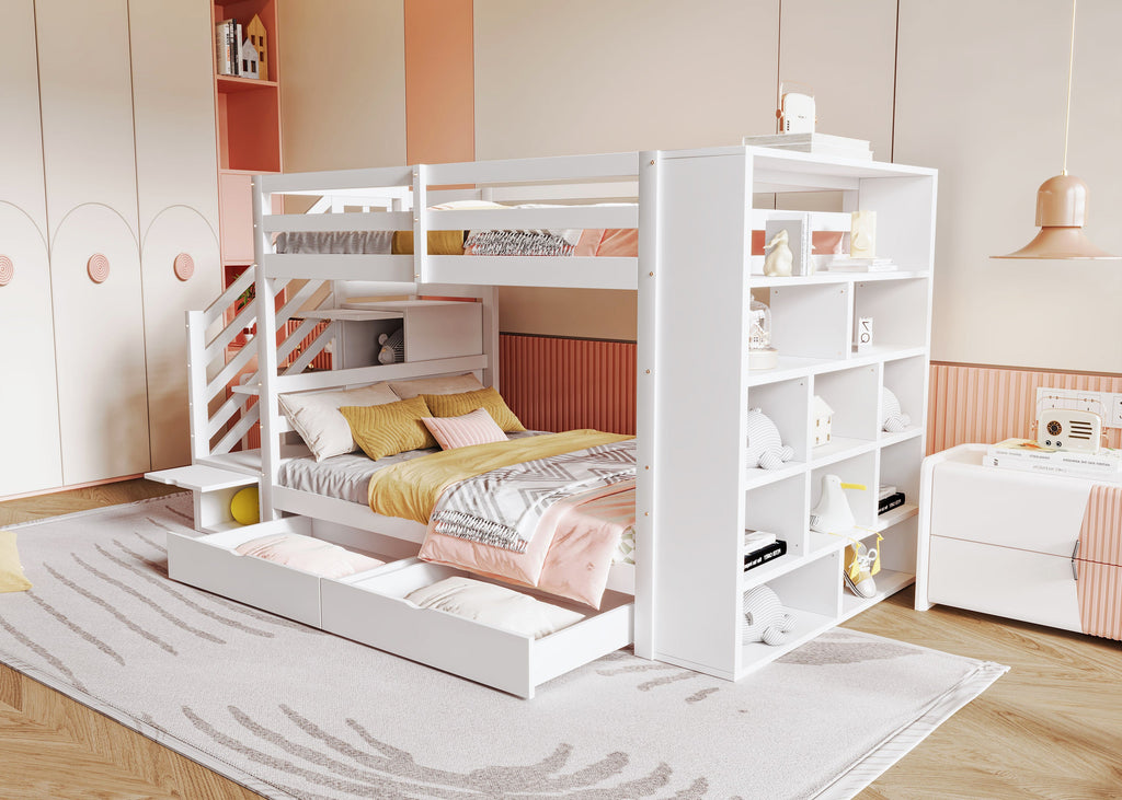 This space-saving bunk bed features multiple built-in storage solutions. It includes spacious drawers and large storage cabinets, offering plenty of space for organizing toys, clothes, and other essentials, helping to keep your child's room tidy.