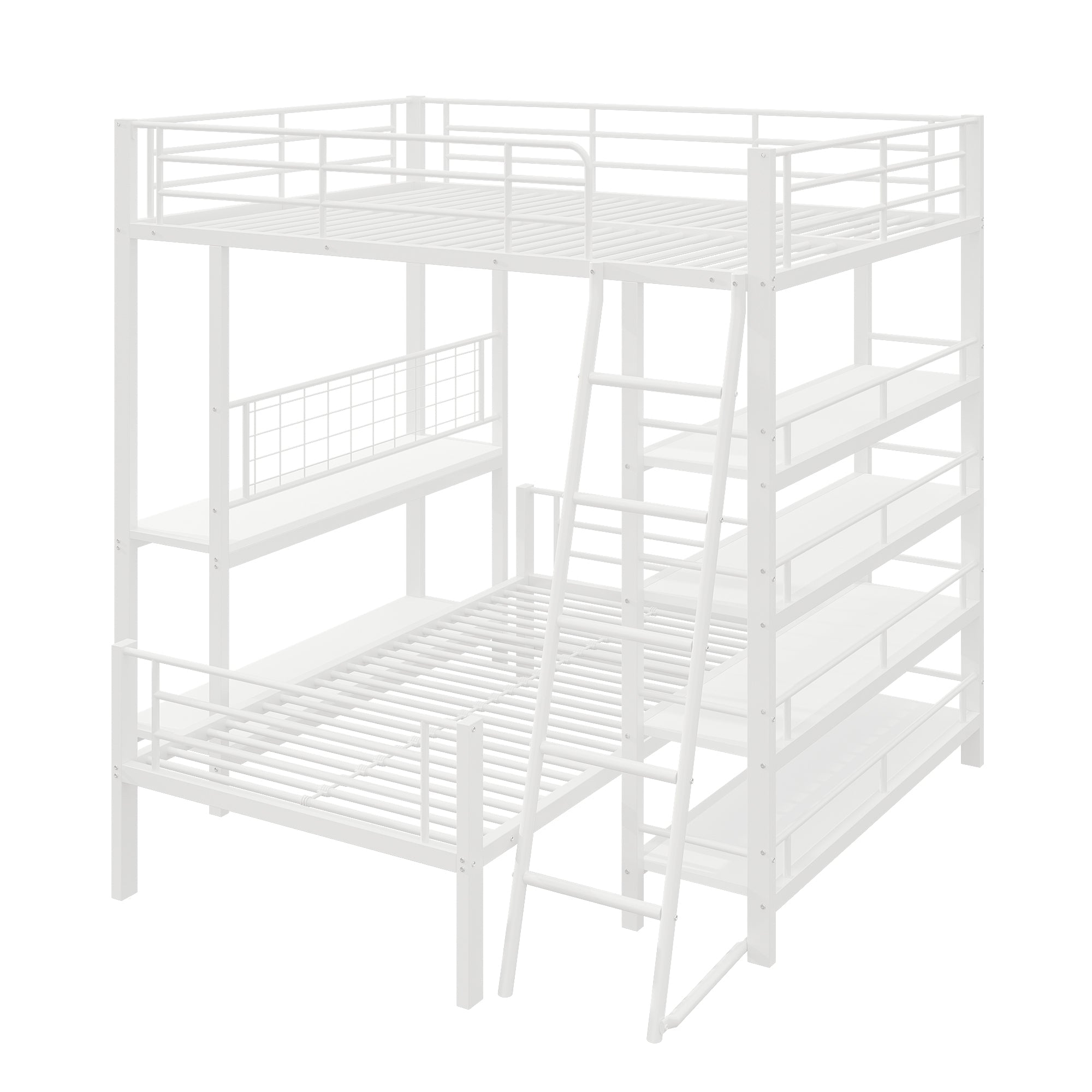 Bunk Bed, Loft 140x200 Multifunctional with Storage, White Metal