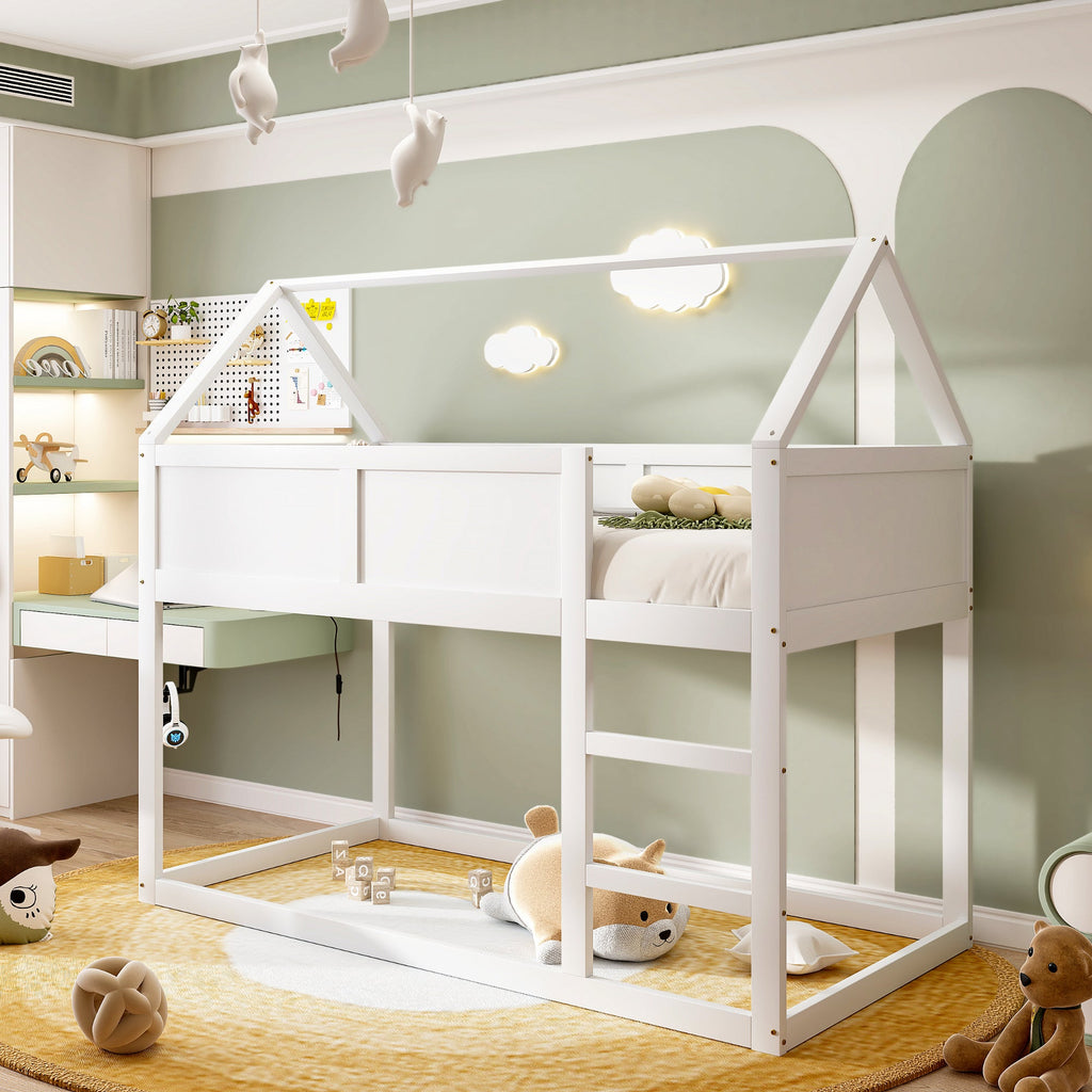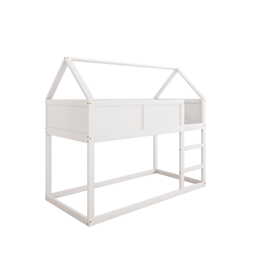 Bunk Bed, Low Single Loft with Stairs, Solid Wood, White