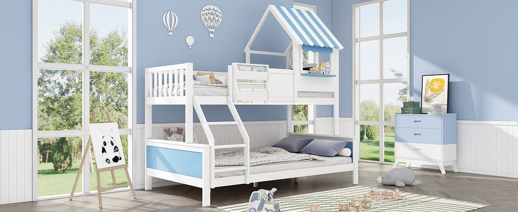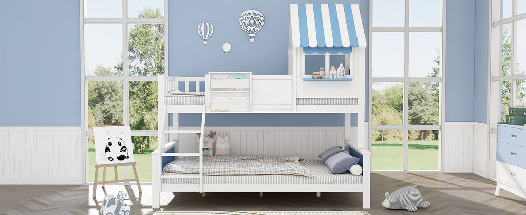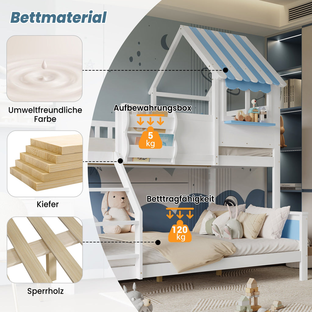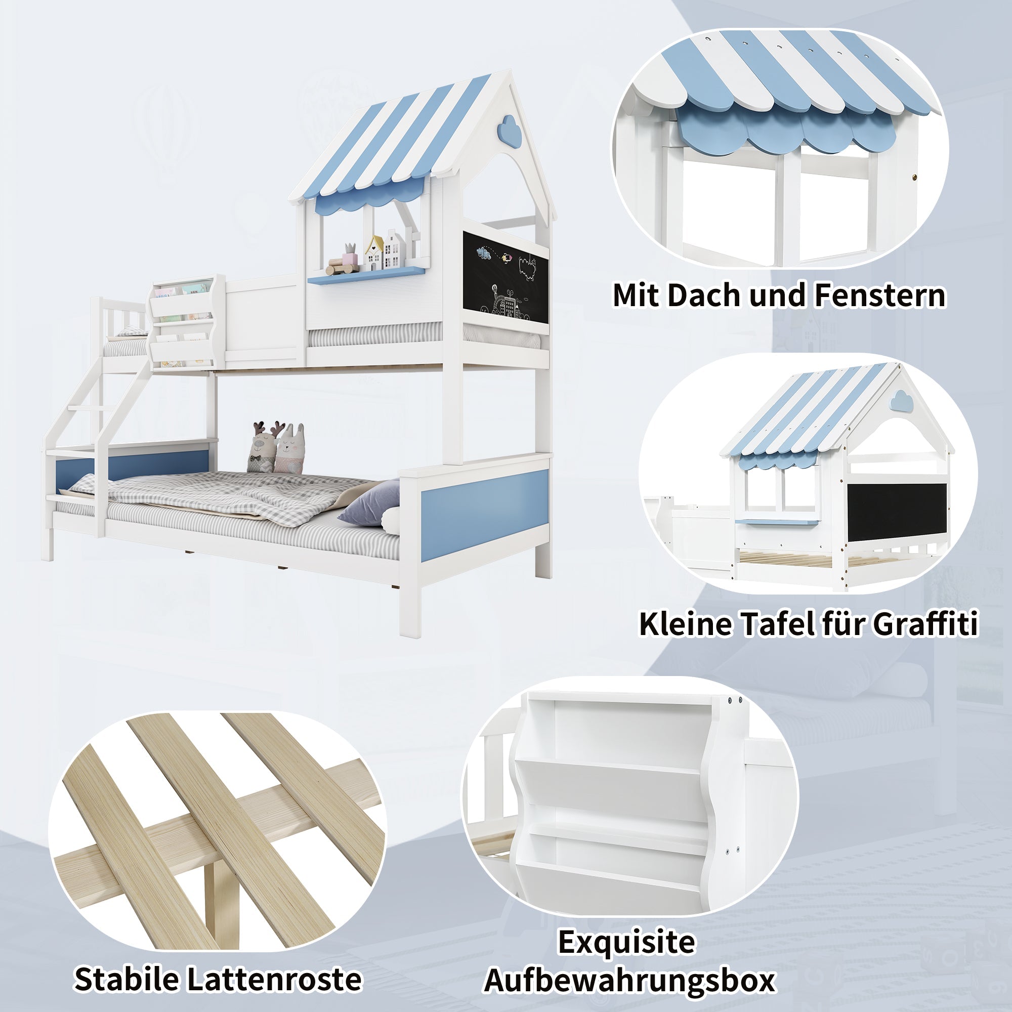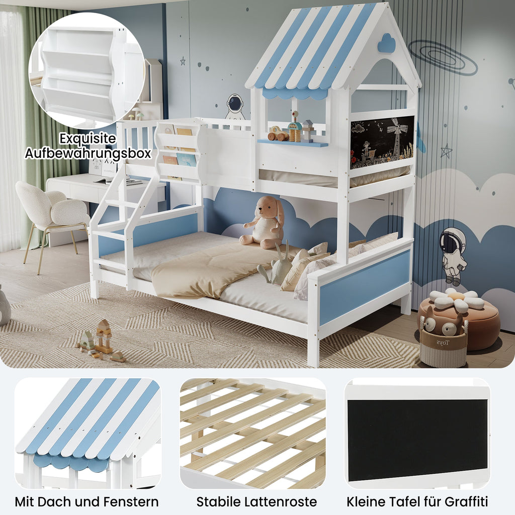 Bunk Bed, Storage, 3-Step Ladder, Window, Graffiti Board, Pine + MDF, White + Blue