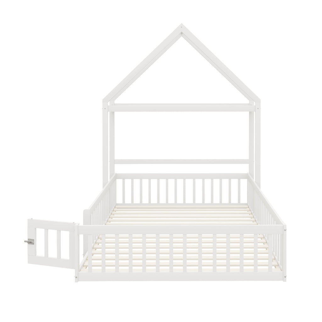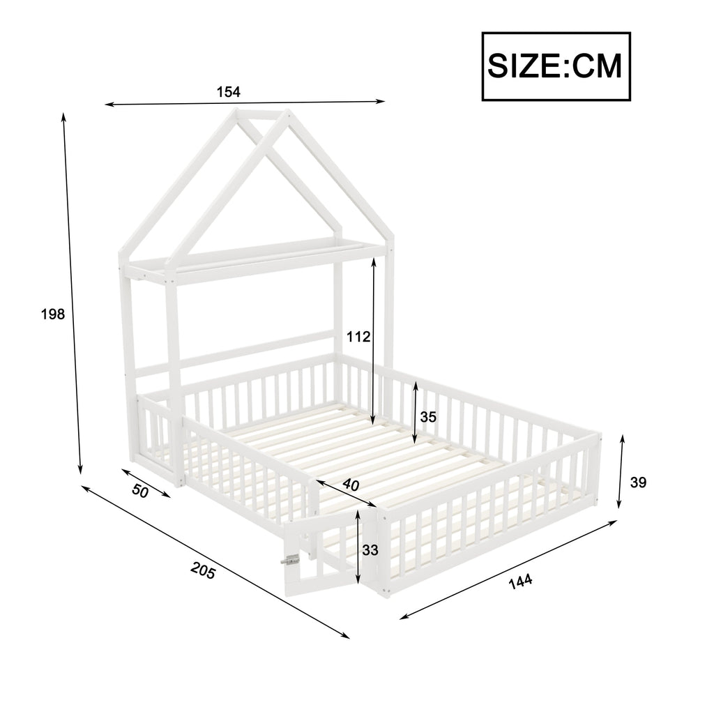 Children's Bed 140x200, Solid Wood Frame with Storage & Safety Gate, White