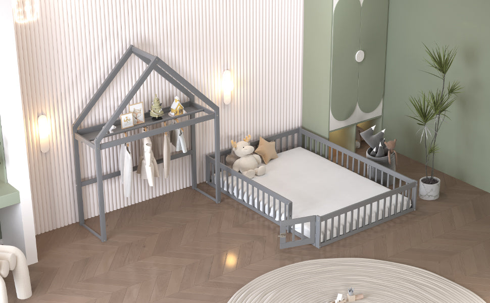 This children's bed with a door features an elegant, simple, and generous pattern design that adds an artistic touch to your home. Small doors that open and close add interest to the bed and ensure a safer sleeping space. The roof design for storage and hanging clothes gives the bed versatility and a variety of combinations. The design of this floor-standing bed frame is simple and slightly elegant. It complements all decor styles and completes the look of any child's room.