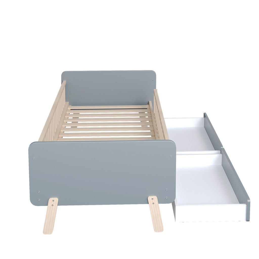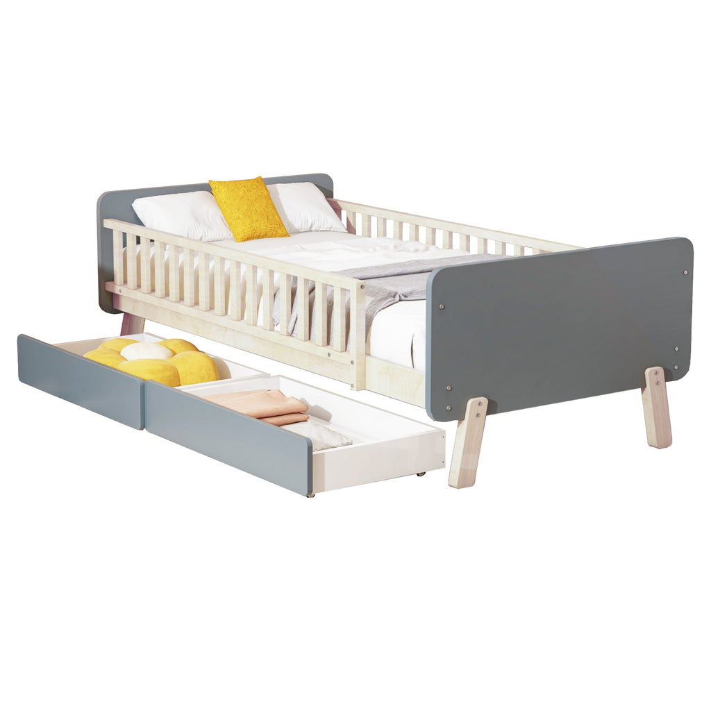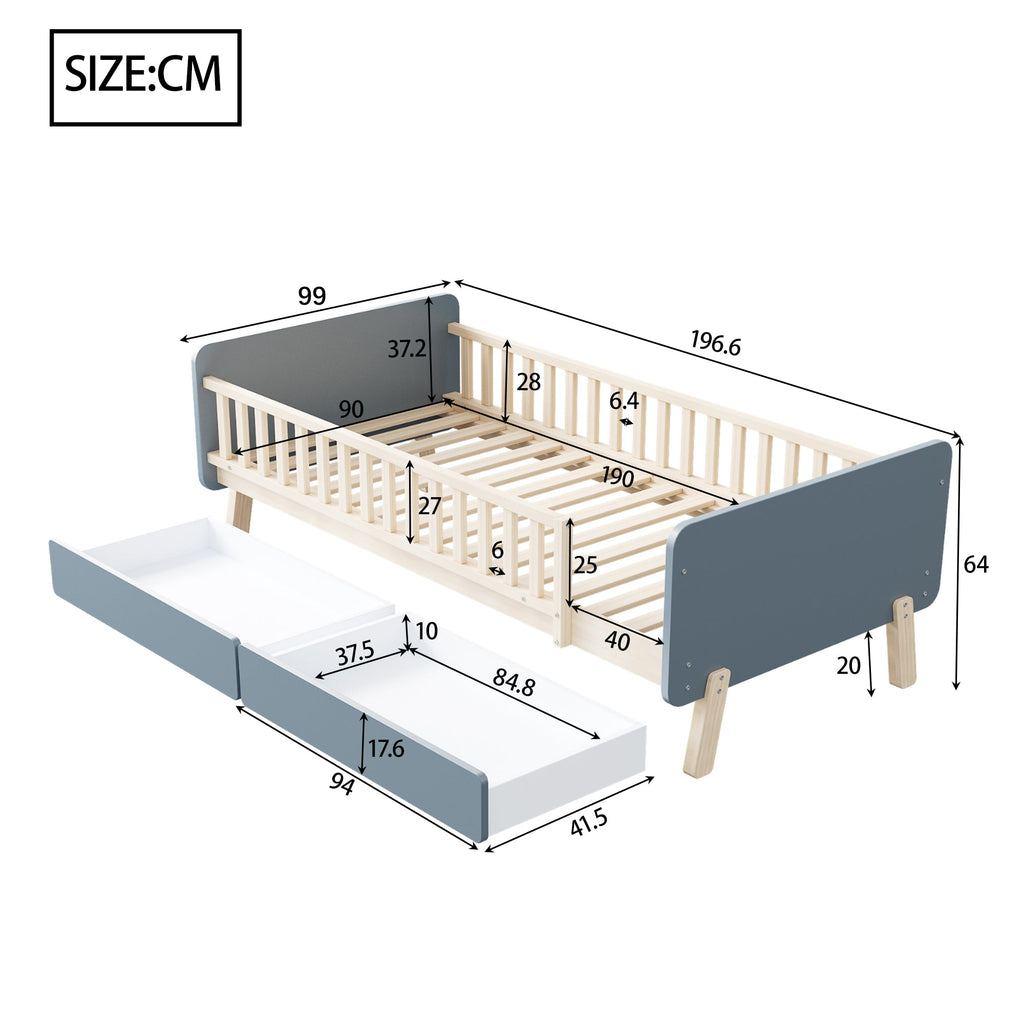 Children's Bed 90x190 with 2 Drawers, Solid Wood, Grey