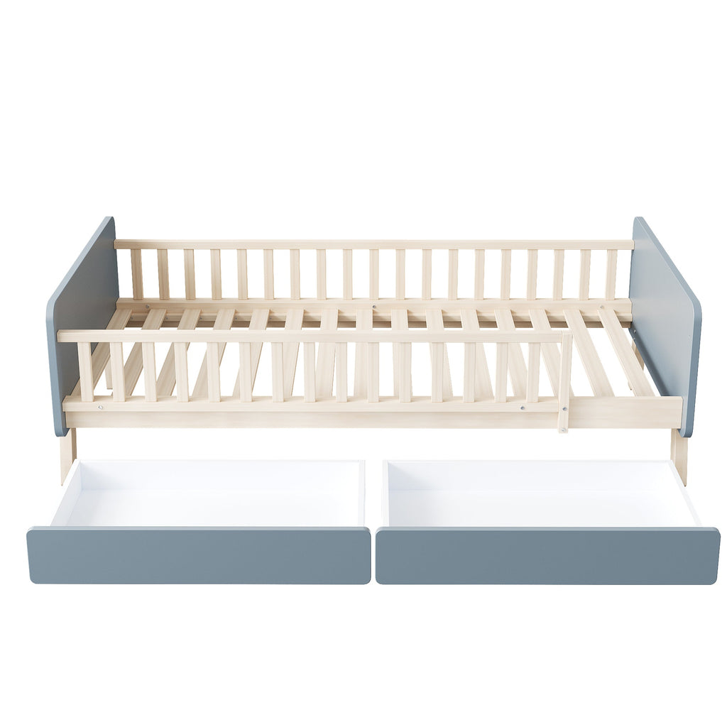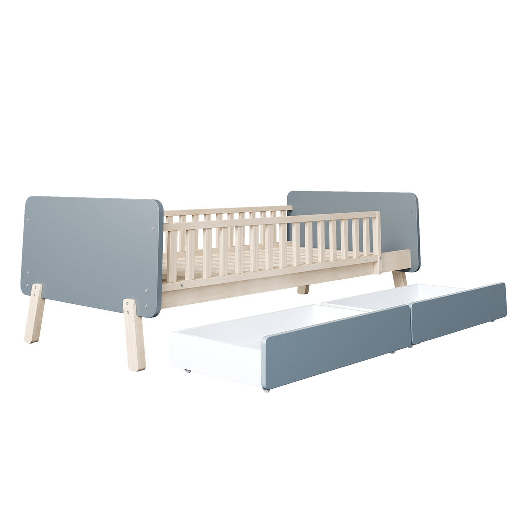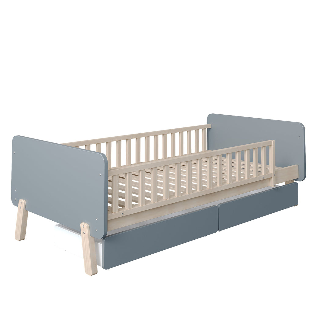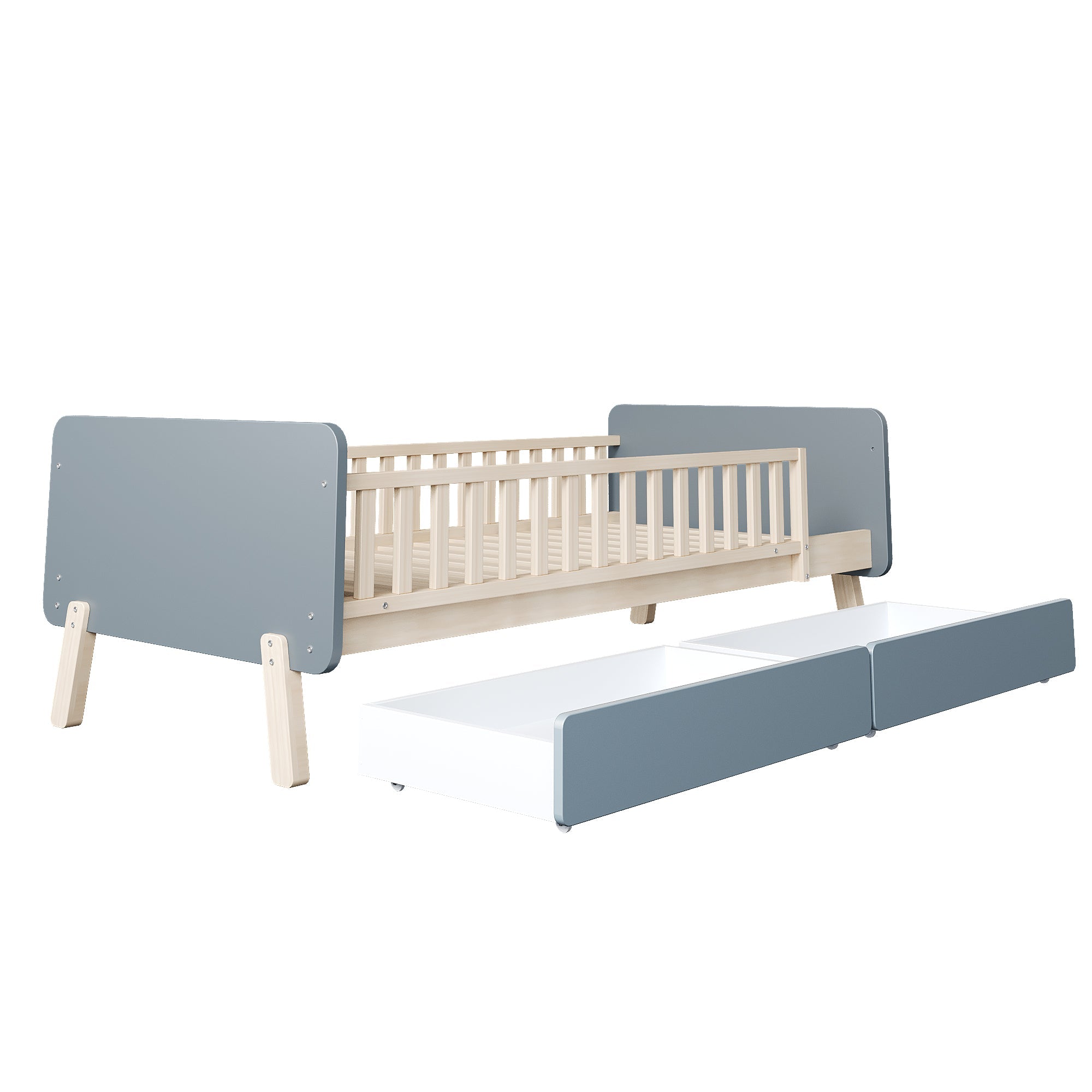Children's Bed 90x190 with 2 Drawers, Solid Wood, Grey