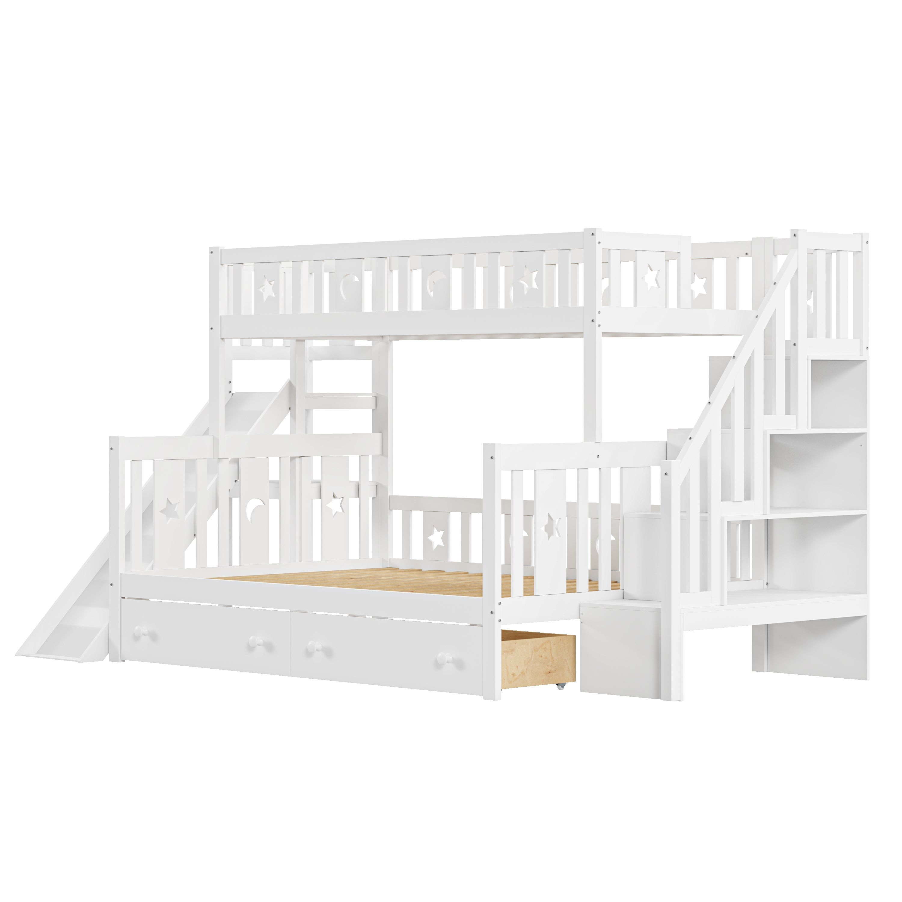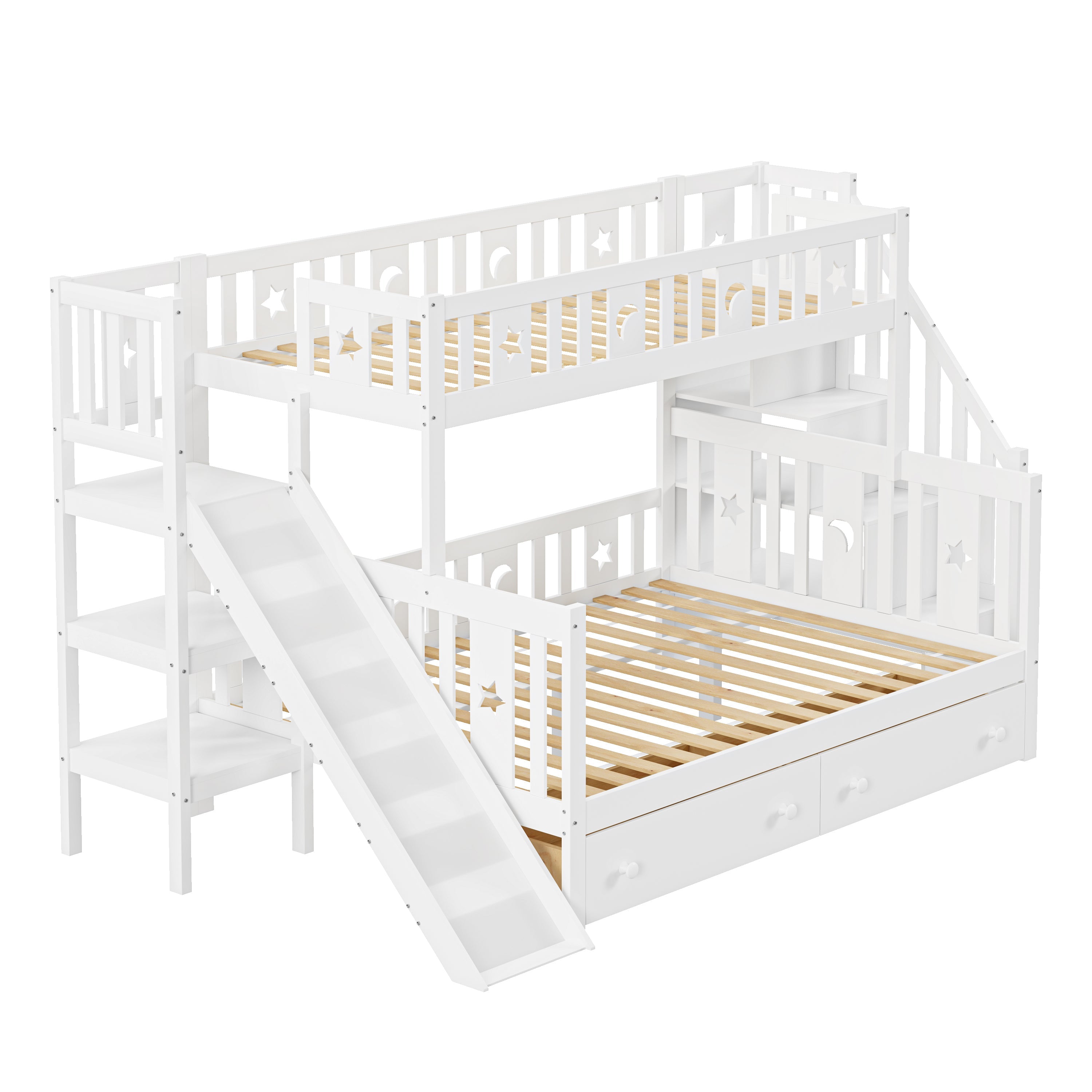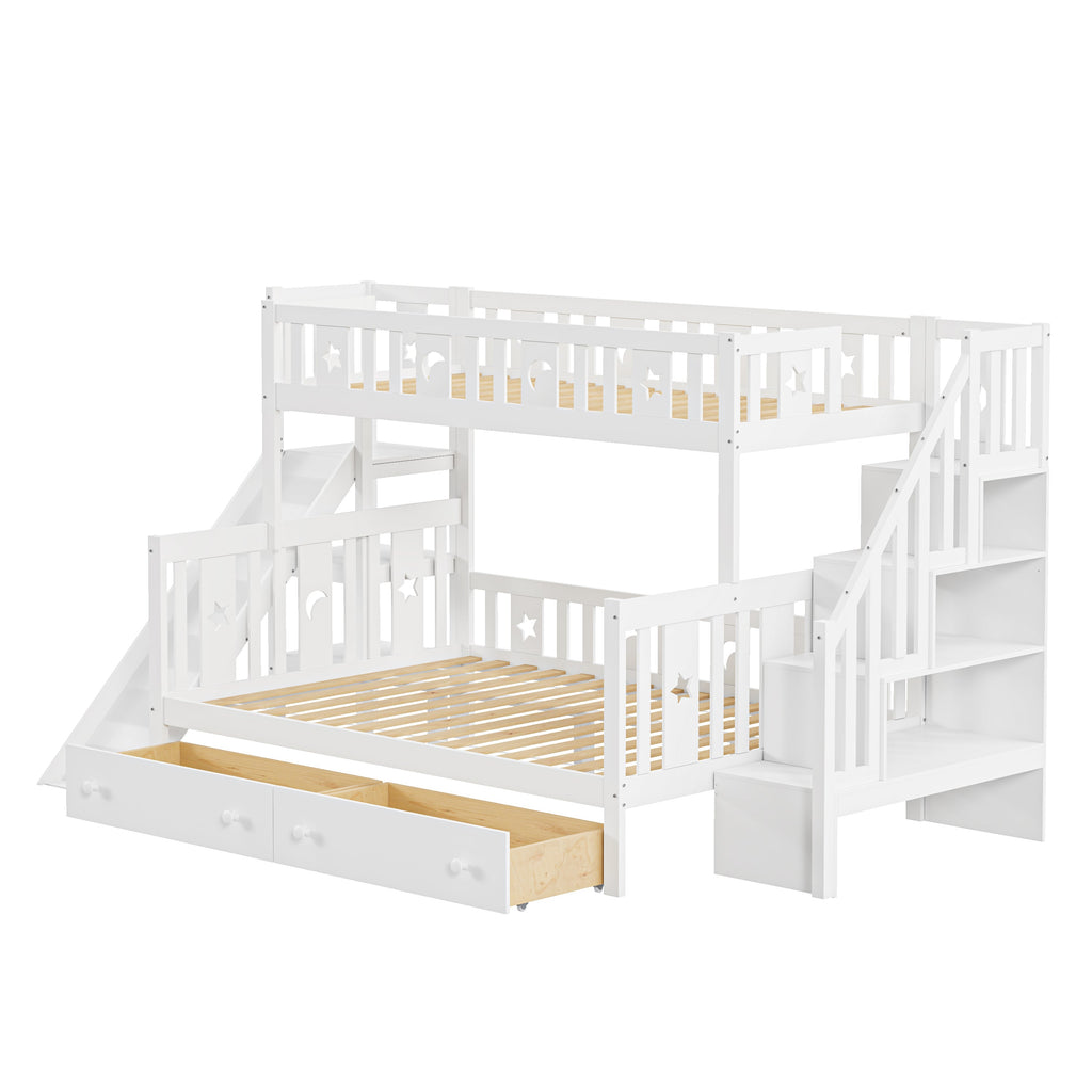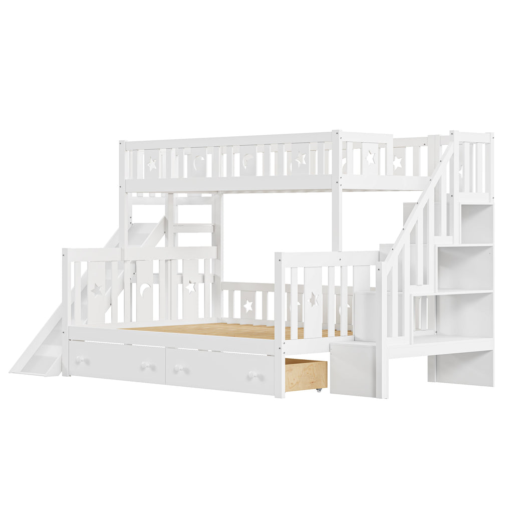 High-quality solid pine legs and a sturdy frame ensure stability and durability for long-term use. The bed frame includes a slatted frame, eliminating the need for a box spring. These multifunctional bunk beds with storage are versatile, and the additional storage space is ideal for small rooms, children's bedrooms, guest rooms, and more. The classic white color perfectly complements any decor.