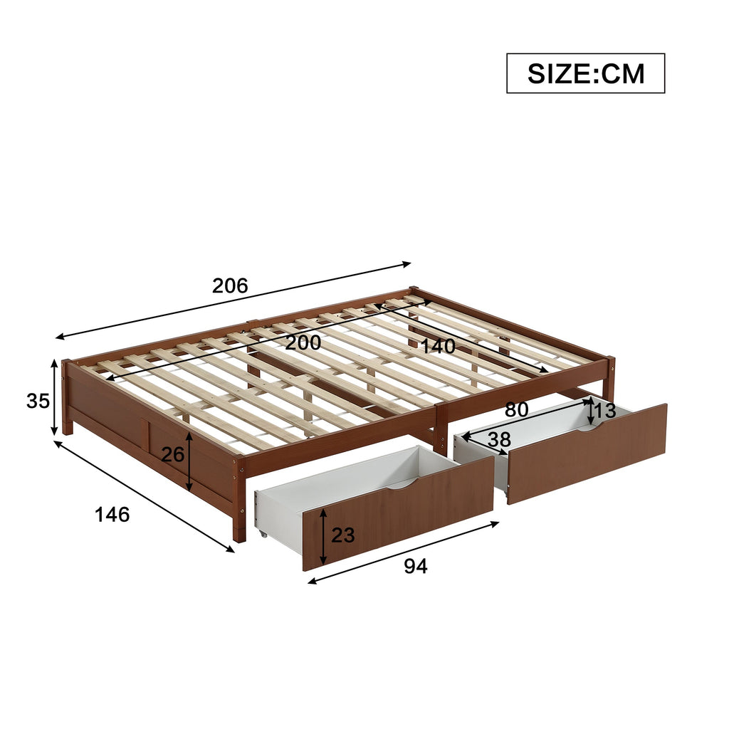 Children's Bed, Flat Wooden with 2 Drawers, Pine+MDF Reddish Brown