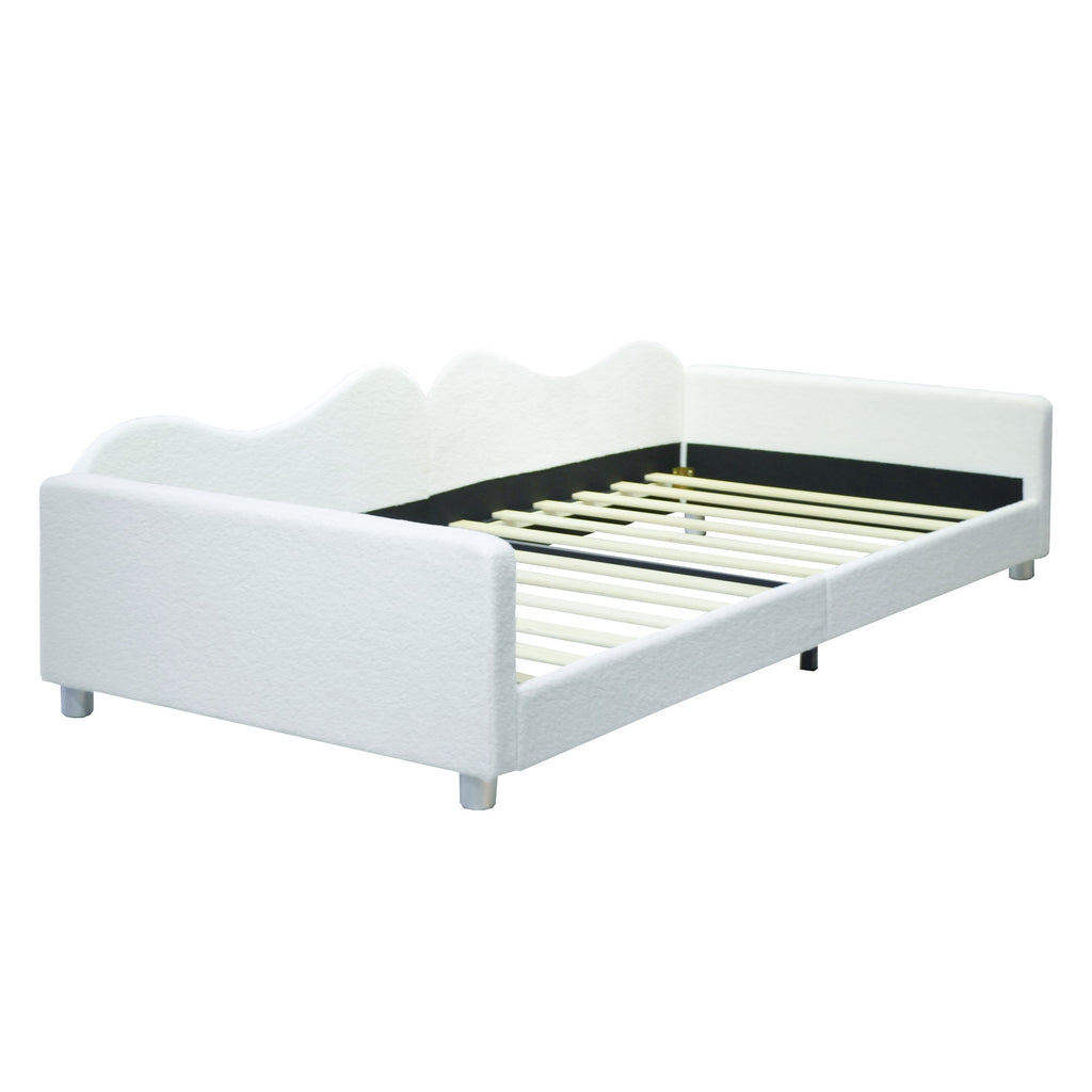 Children's Bed Upholstered 90*200cm, Multifunctional Sofa Bed Frame with Backrest and Armrests, White