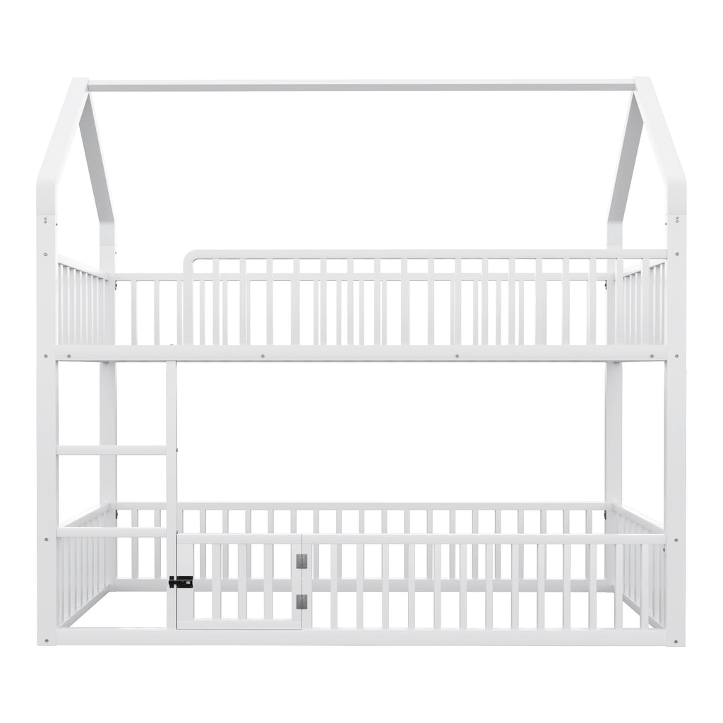 This two-story metal bed is specially designed for families, teens, and children, offering both fun and practicality. The upper bed features a metal slatted frame, providing a stable and comfortable sleeping space. The lower bed includes a hinged door, creating a versatile area perfect for resting, reading, playing games, or entertaining, making it a multifunctional addition to any bedroom.