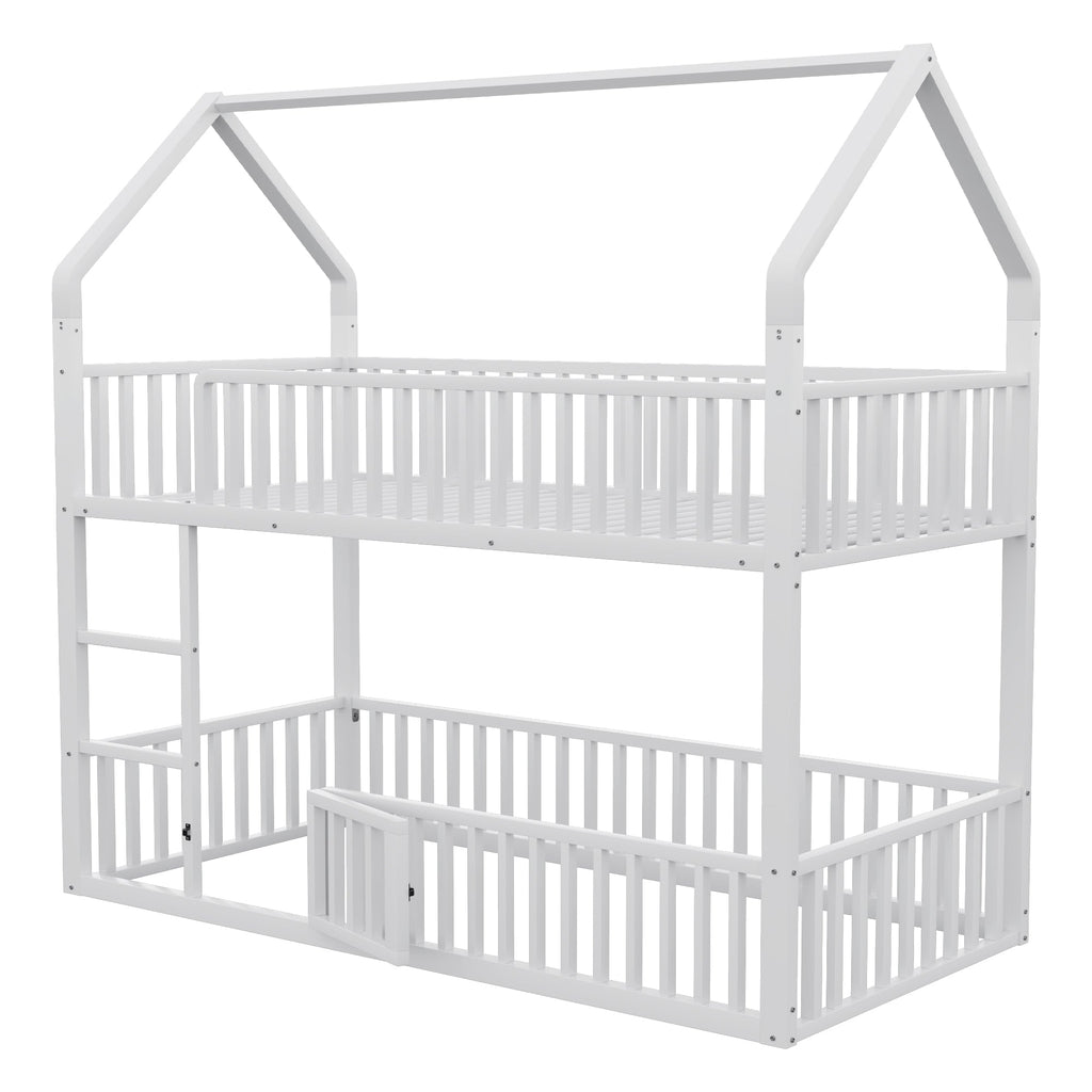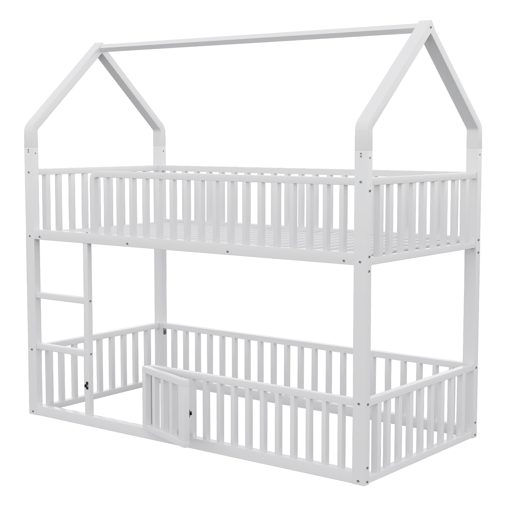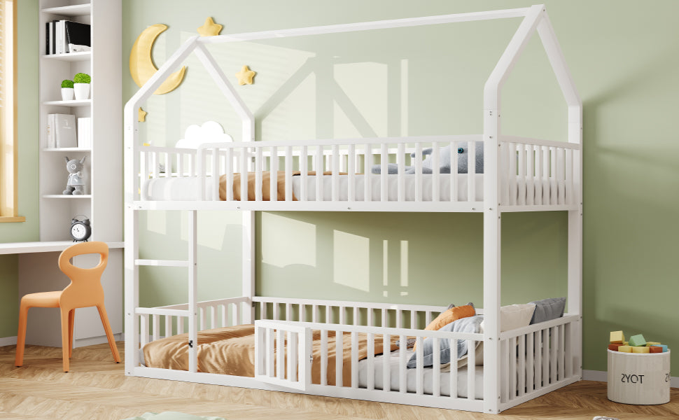 Safety is our top priority. Both the upper and lower beds are equipped with safety rails to ensure your children or guests can sleep securely. The upright front ladder allows for easy access to the upper bed, while the house-shaped frame of the upper bed encourages imagination and fun.