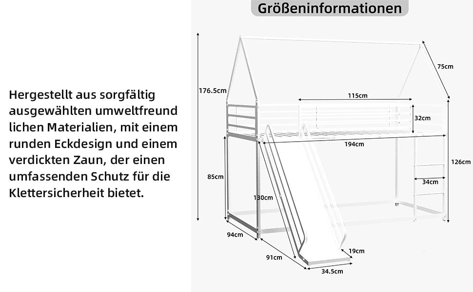 Ultra-Sturdy & Safe Metal Frame: This bunk bed is built with a solid metal frame for long-lasting durability, ensuring stability and safety. The high railings on the upper bunk provide additional security for a peaceful, worry-free sleep.