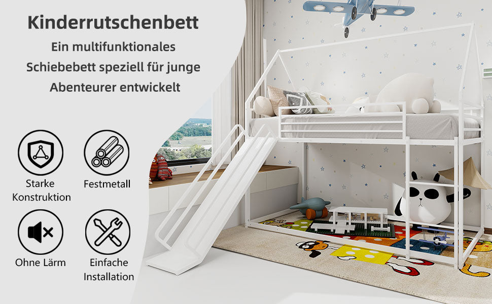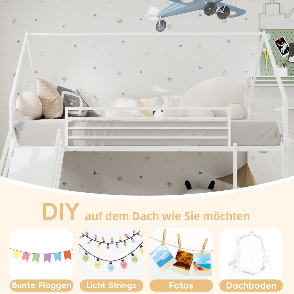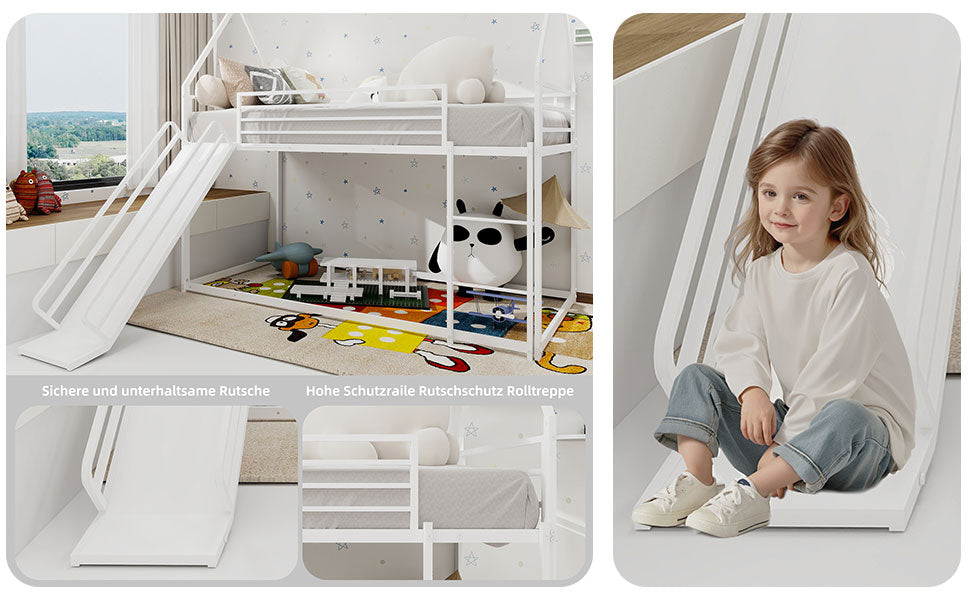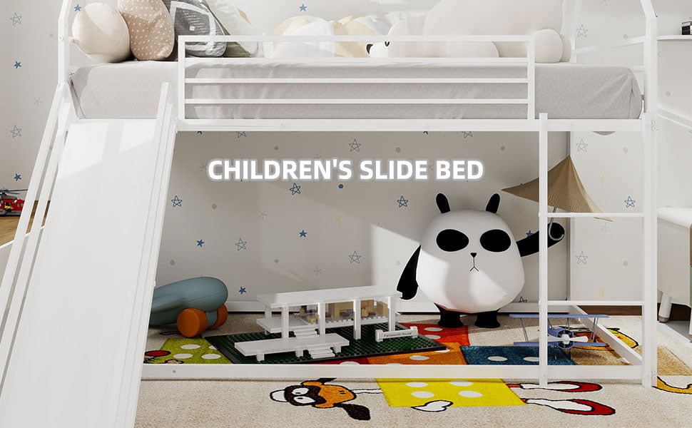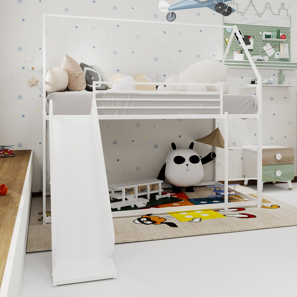 Twin over Twin Bunk Bed, House Shaped with Slide & Ladder, Metal