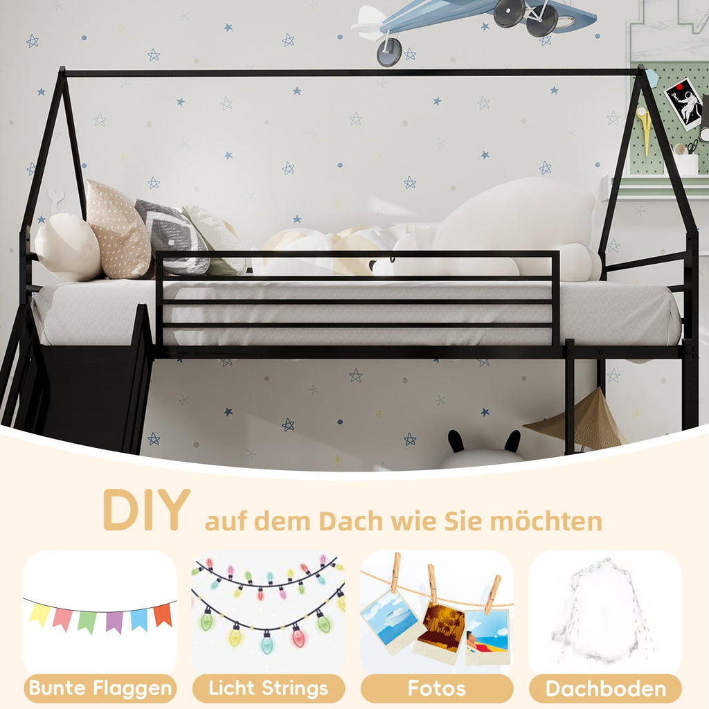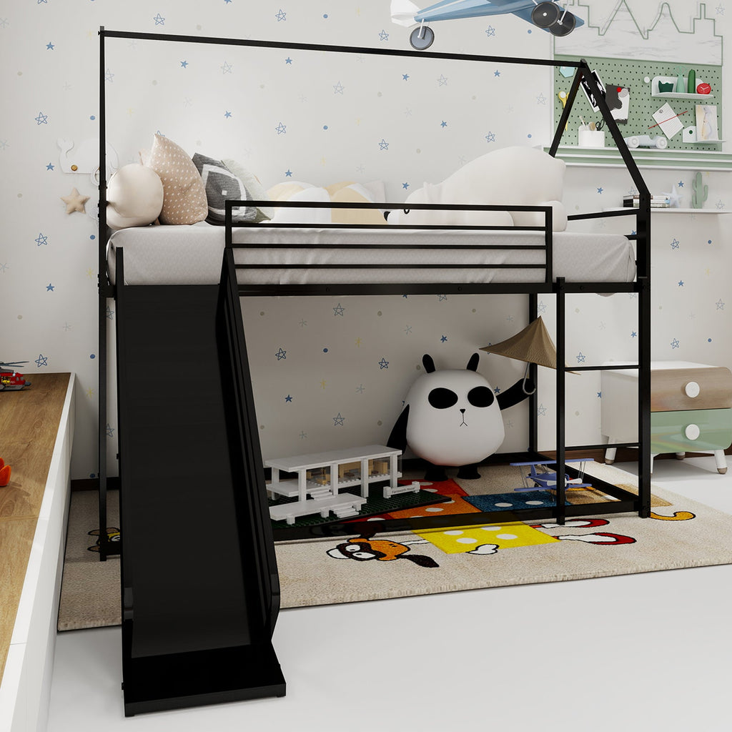 Twin over Twin Bunk Bed with Slide, House Shaped, Metal