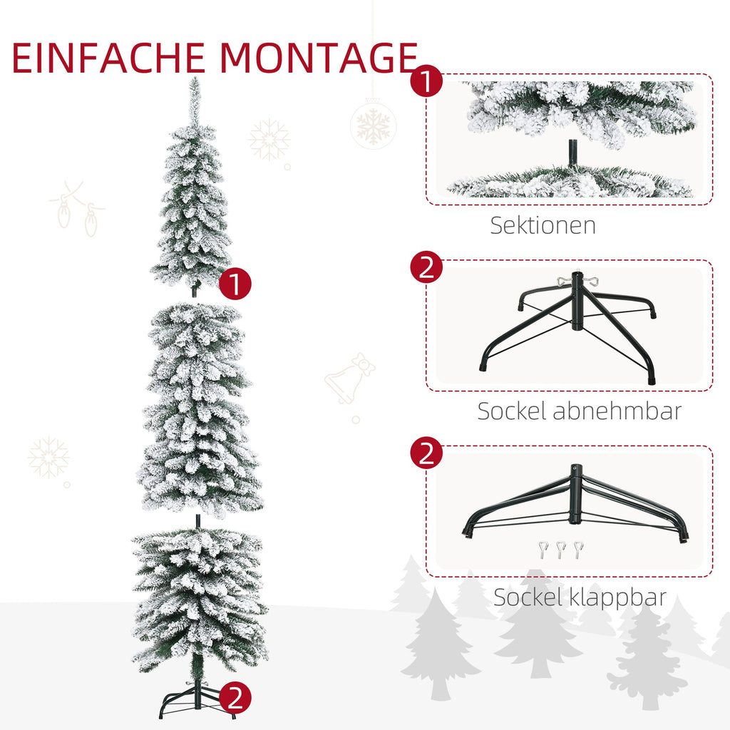 Artificial Christmas Tree, Slim Snow-Covered Fireproof, 210 cm, Green/White