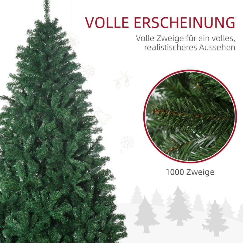Christmas Tree 1.8m Artificial Fir 1000 Branches Metal Base Green PVC