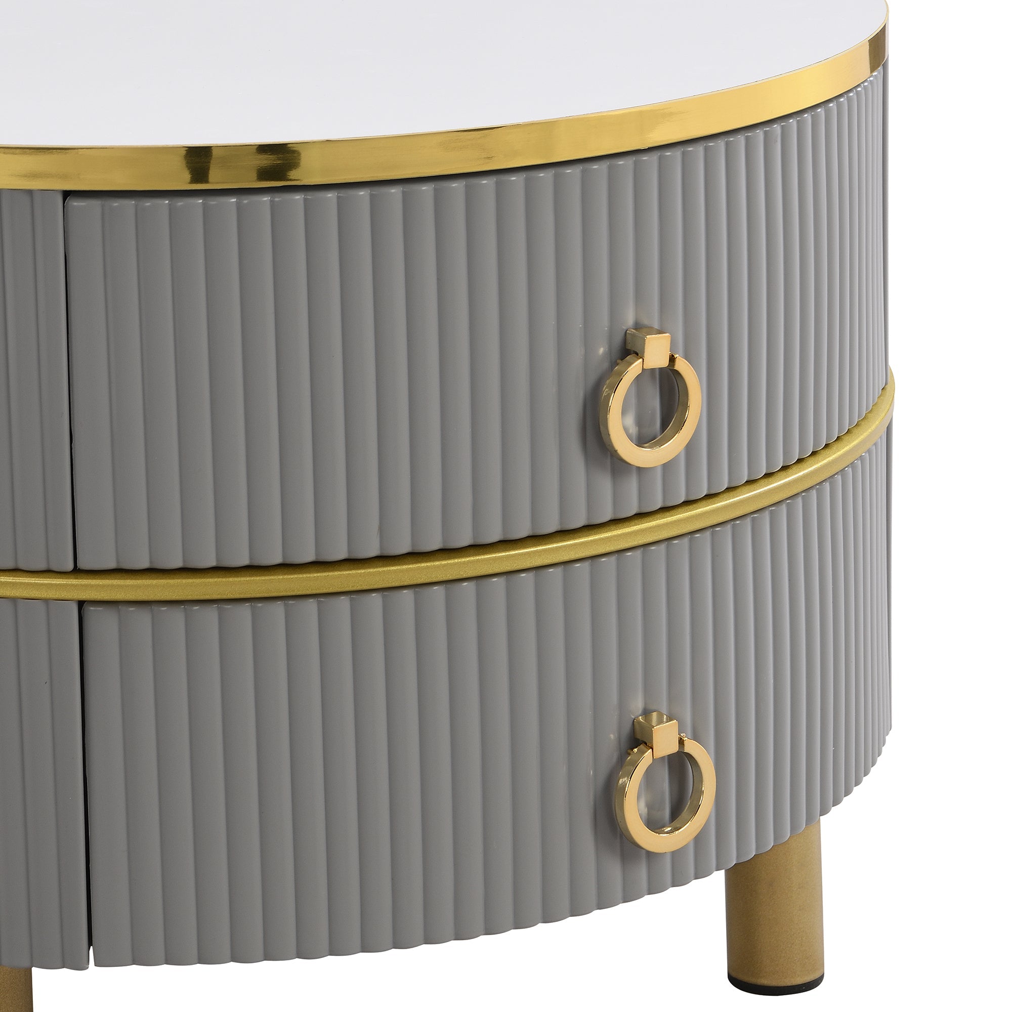 2-in-1 Round Coffee Table Set, MDF Glossy Top & Marble Top with 2 Drawers