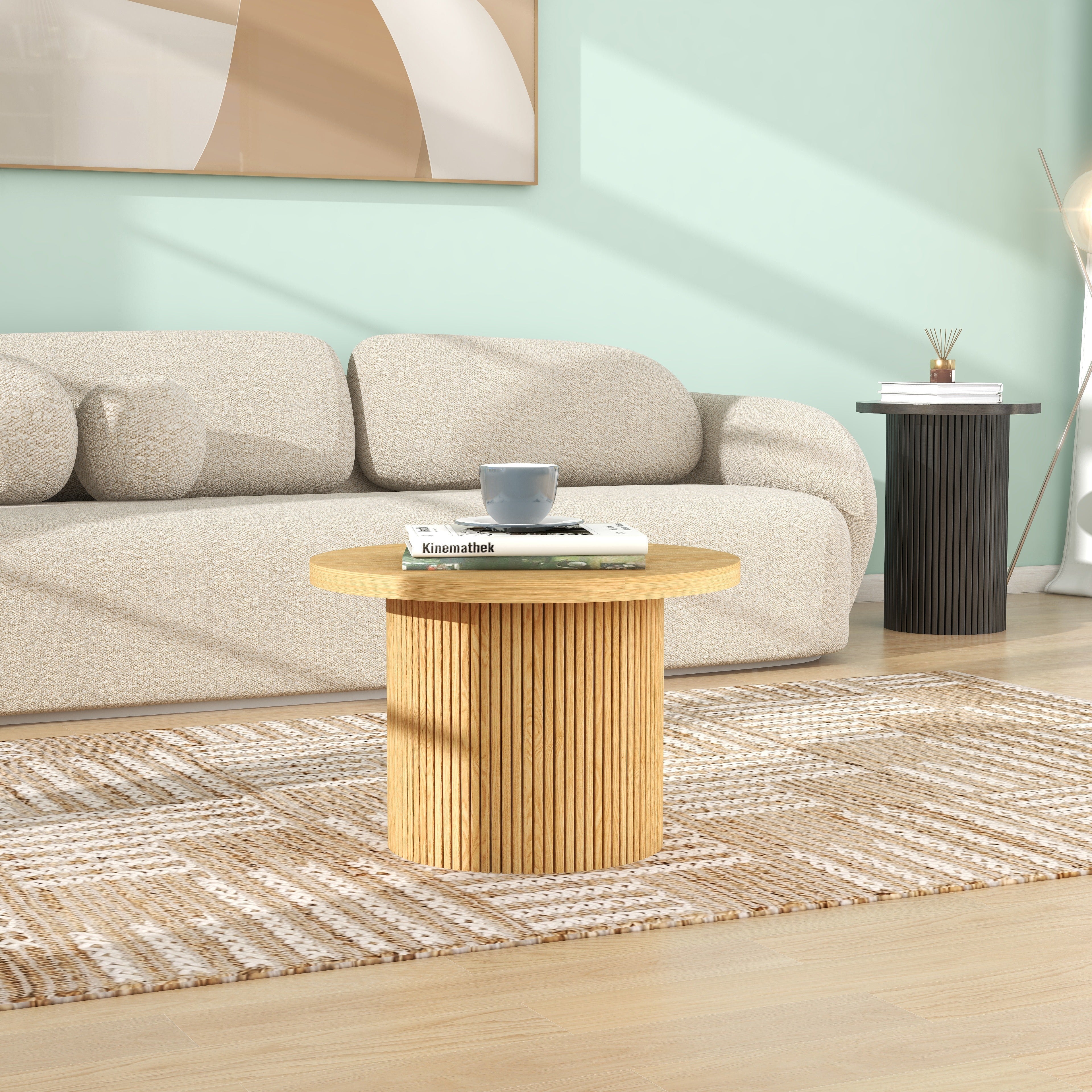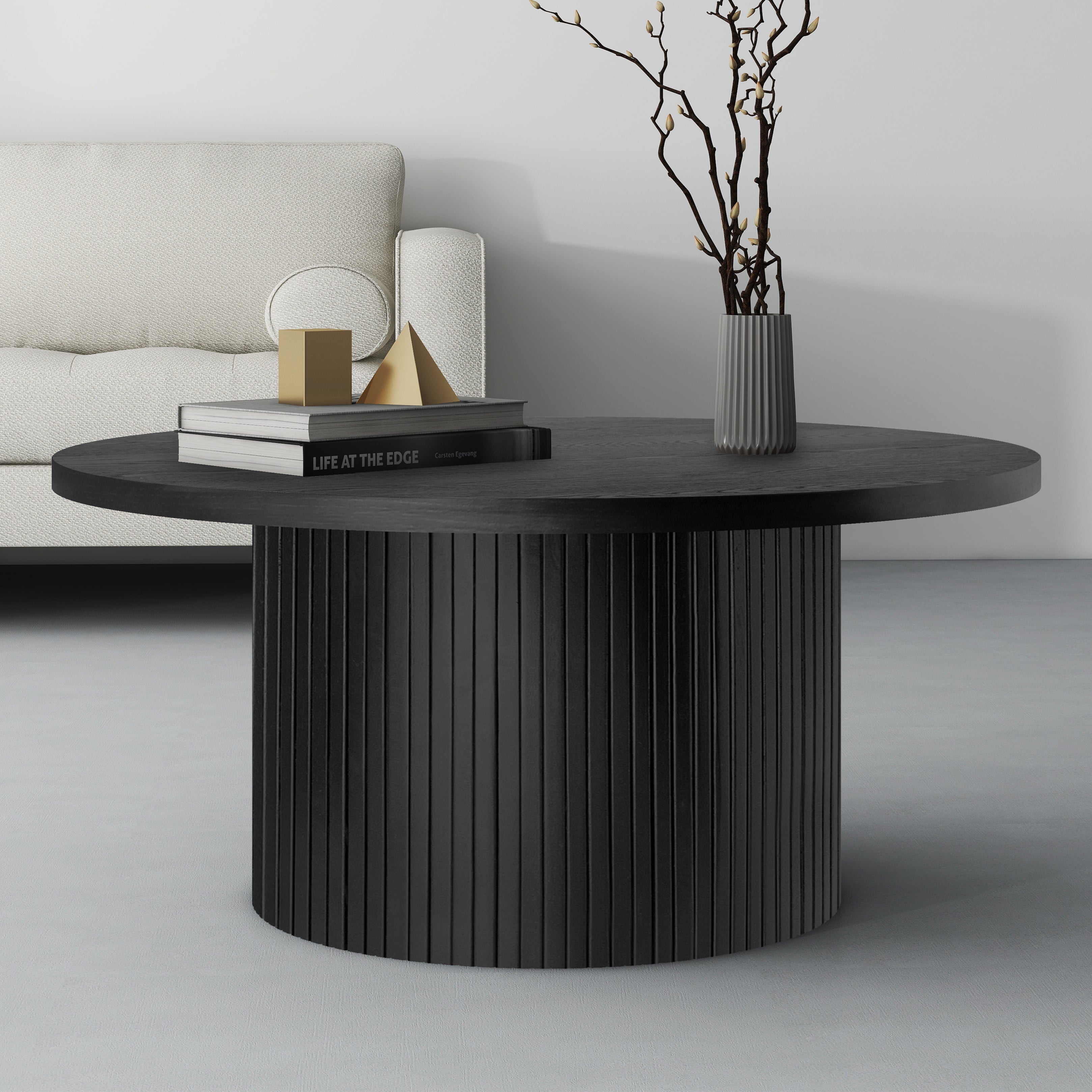 Stylish space-saving solution: Elevate your living space with our modern pedestal coffee table, available in two sizes—35.4" W or 23.6" W. Crafted from durable MDF engineered wood, both sizes offer ample surface area for your essentials and the option to use them as nesting tables for added versatility.