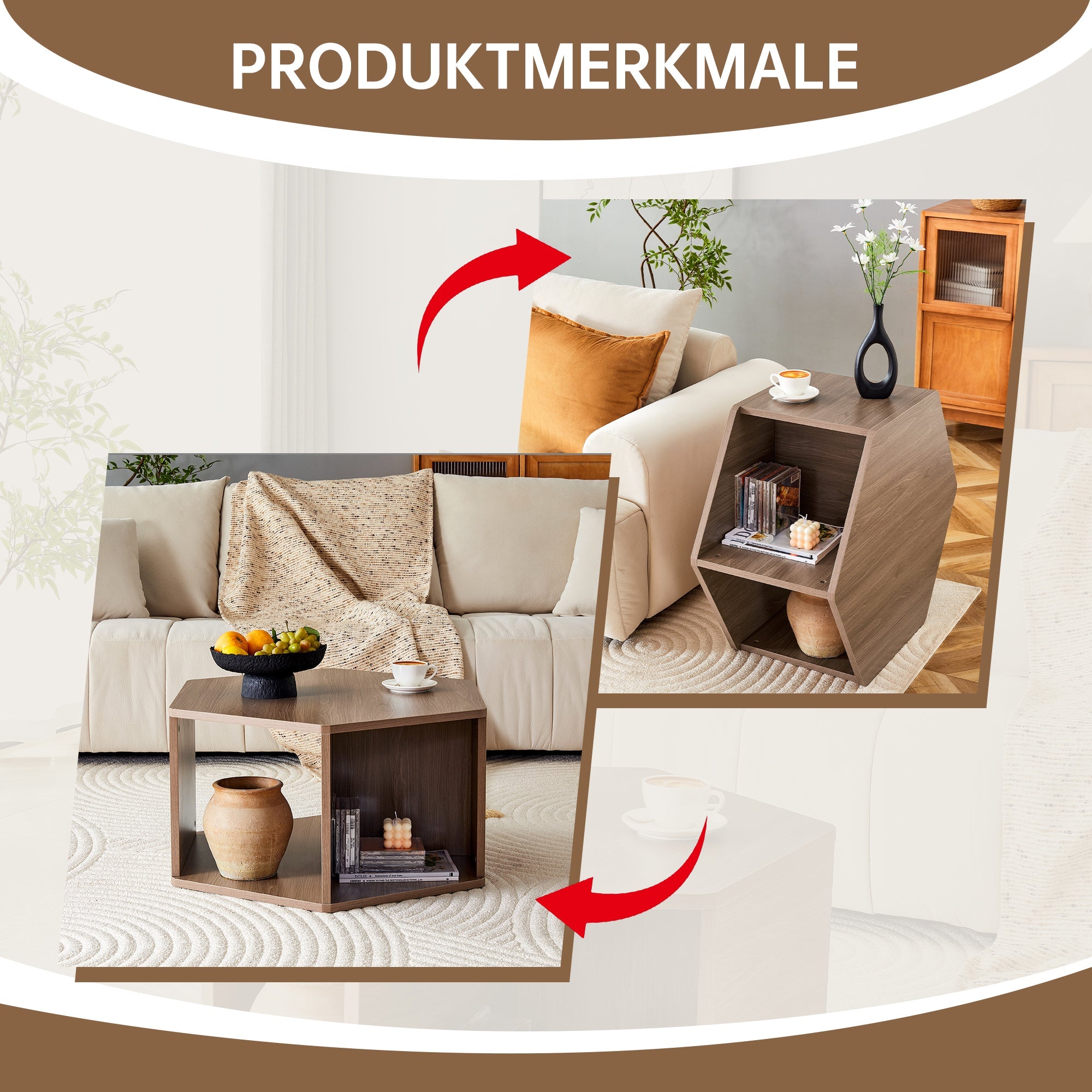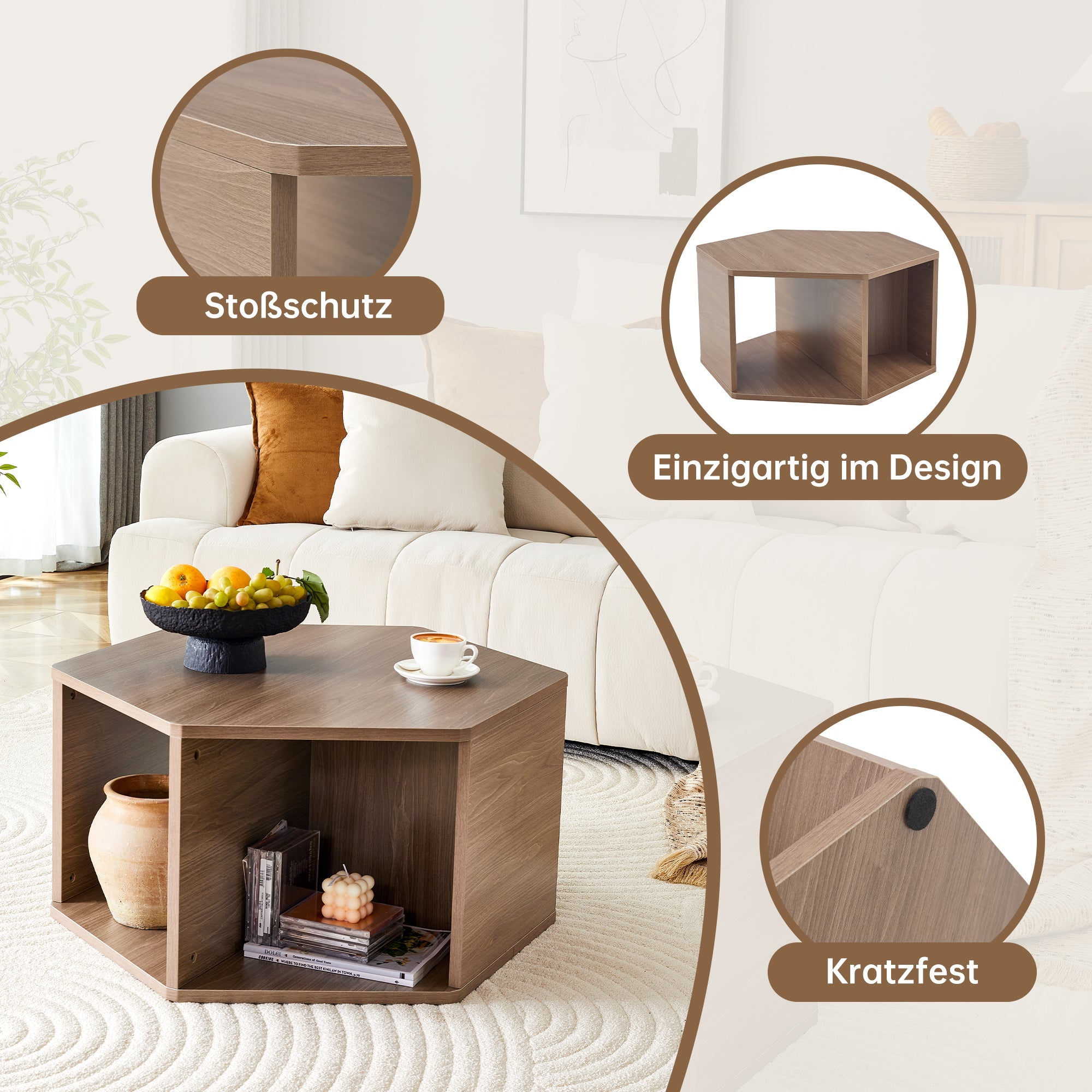 Hexagonal Coffee Table Multifunctional Modern Design Expanded Storage 79x69.4x40 cm