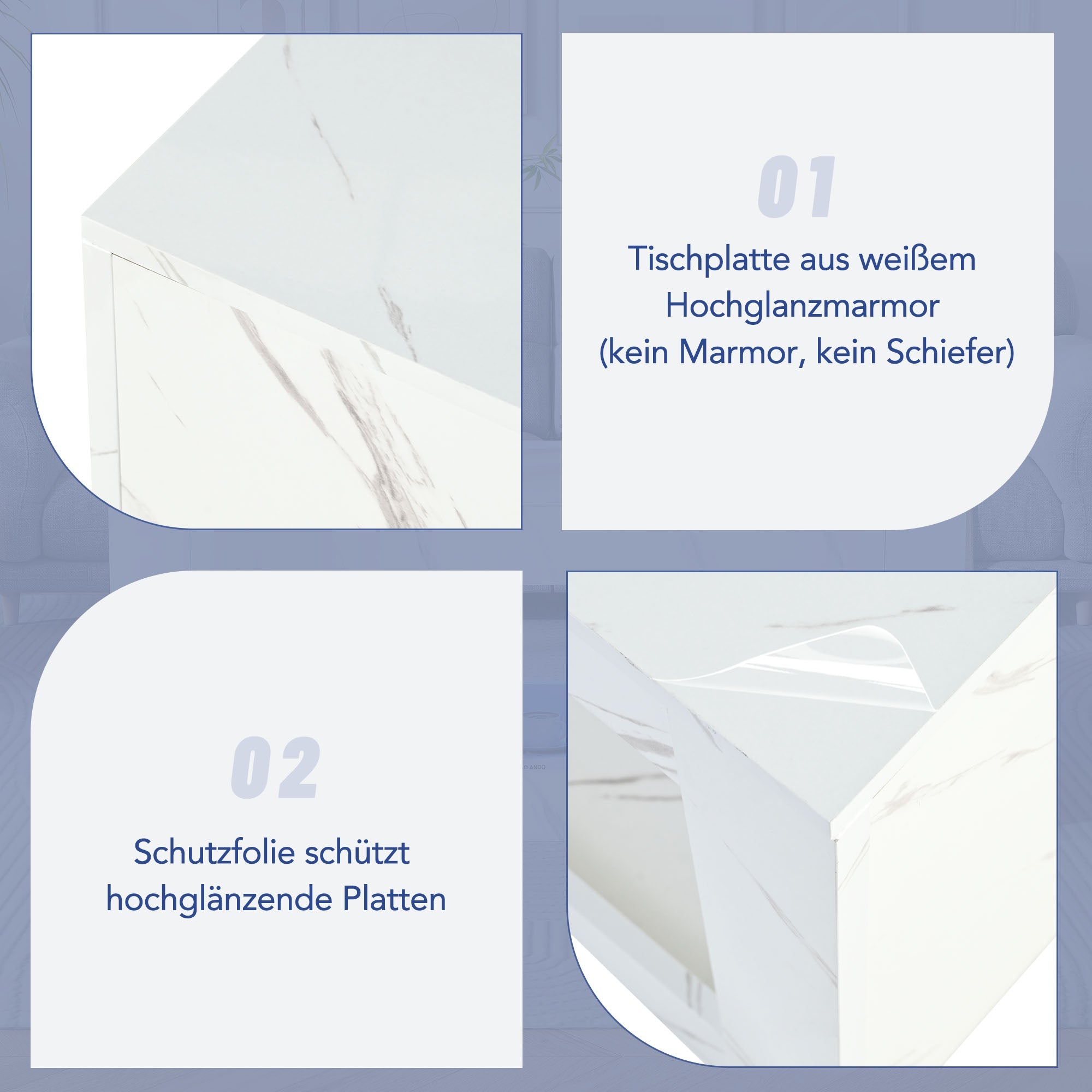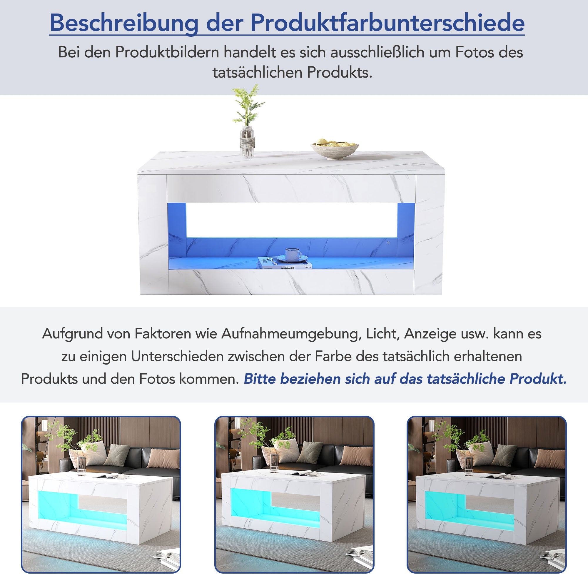 Modern LED Coffee Table - High-Gloss Remote Control Large Marble Print - White