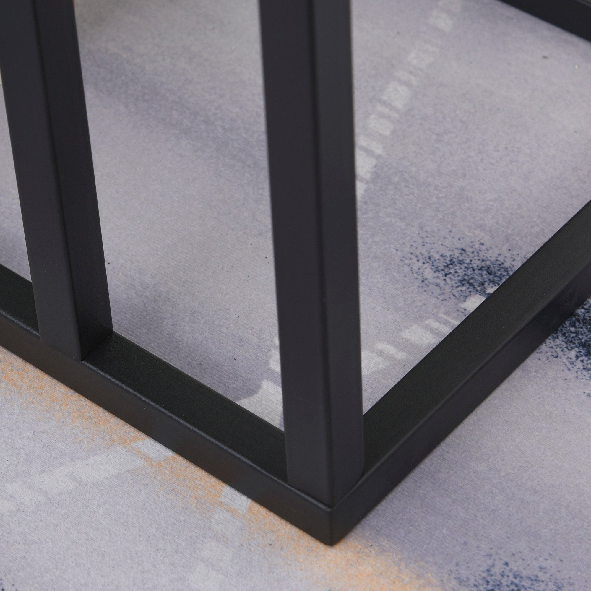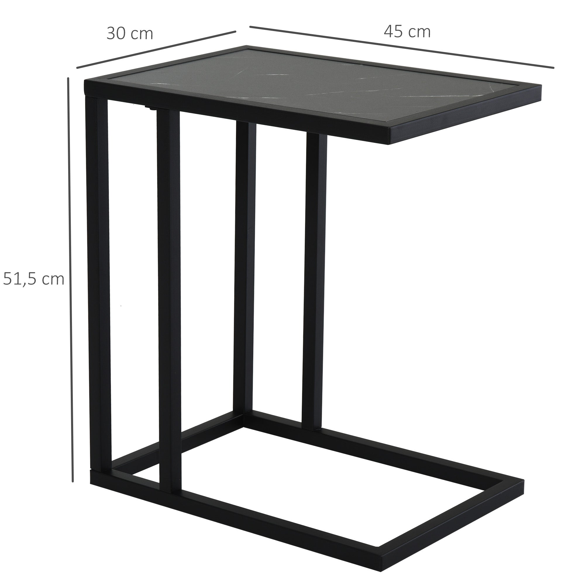 Side Table Coffee Table Marble Look Metal Frame, Black
